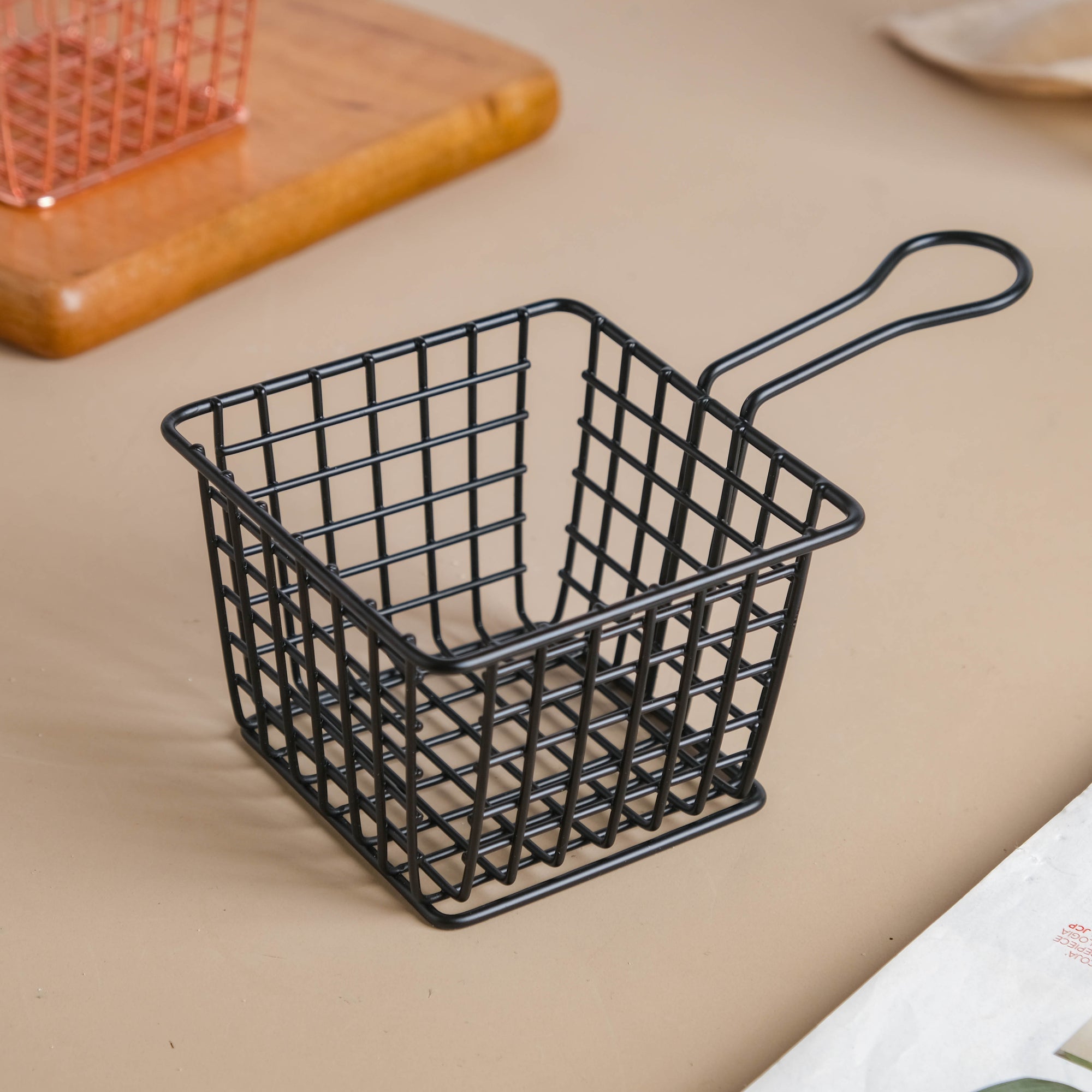 The vintage deep fry basket makes the perfect piece of kitchen supply or kitchen decor utility product. The basket is a fun piece to re-purpose, whether one wants to use it for the traditional purpose of serving potato fries, chips, nuggets, fish fingers, or as a planter holding basket, or as an egg storage pot. Ready to hold mixings for guacamole - a couple of avocados, a red onion, some lemons, or simple chips, popcorn, nachos, or fries and nuggets, the metal basket is easy to store and clean. The sturdy-built basket will last in one's kitchen for years without rusting or getting deformed. The deep-frying basket is available in two colors- rose gold and black.