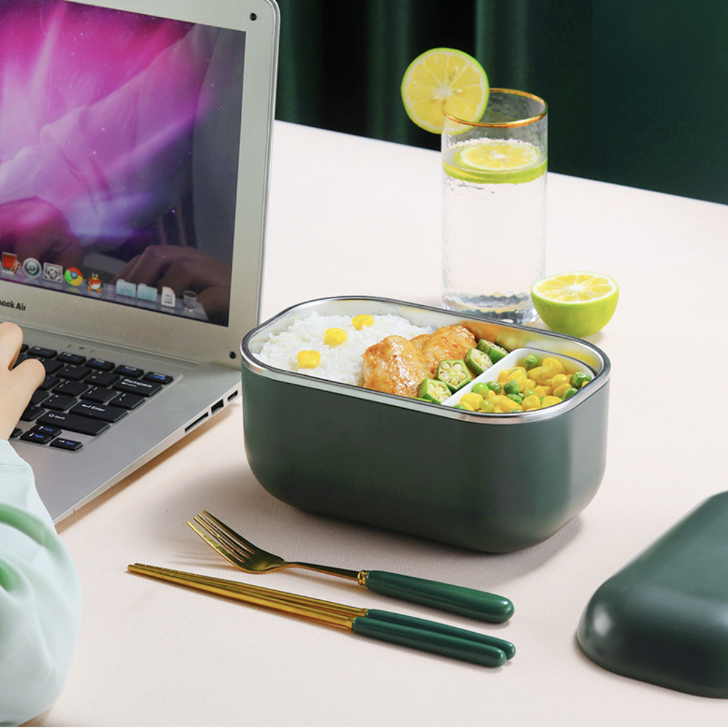 The anti-hot insulated tiffin box has a compartment present inside to put different food components separately. The portable electric lunch box maintains a constant temperature of 70°C to ensure the food remains fresh at all times, and thus it can be easily carried to the office for enjoying warm homemade food.