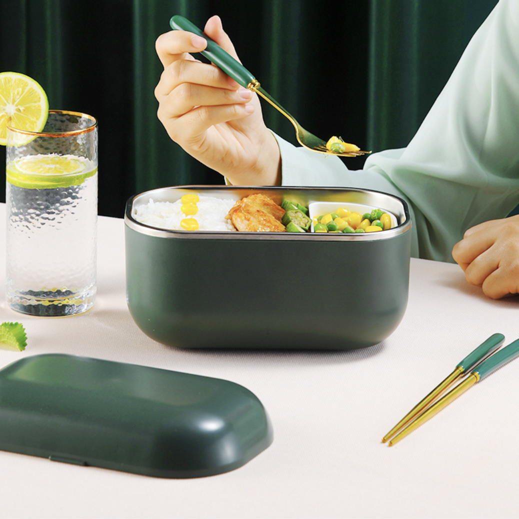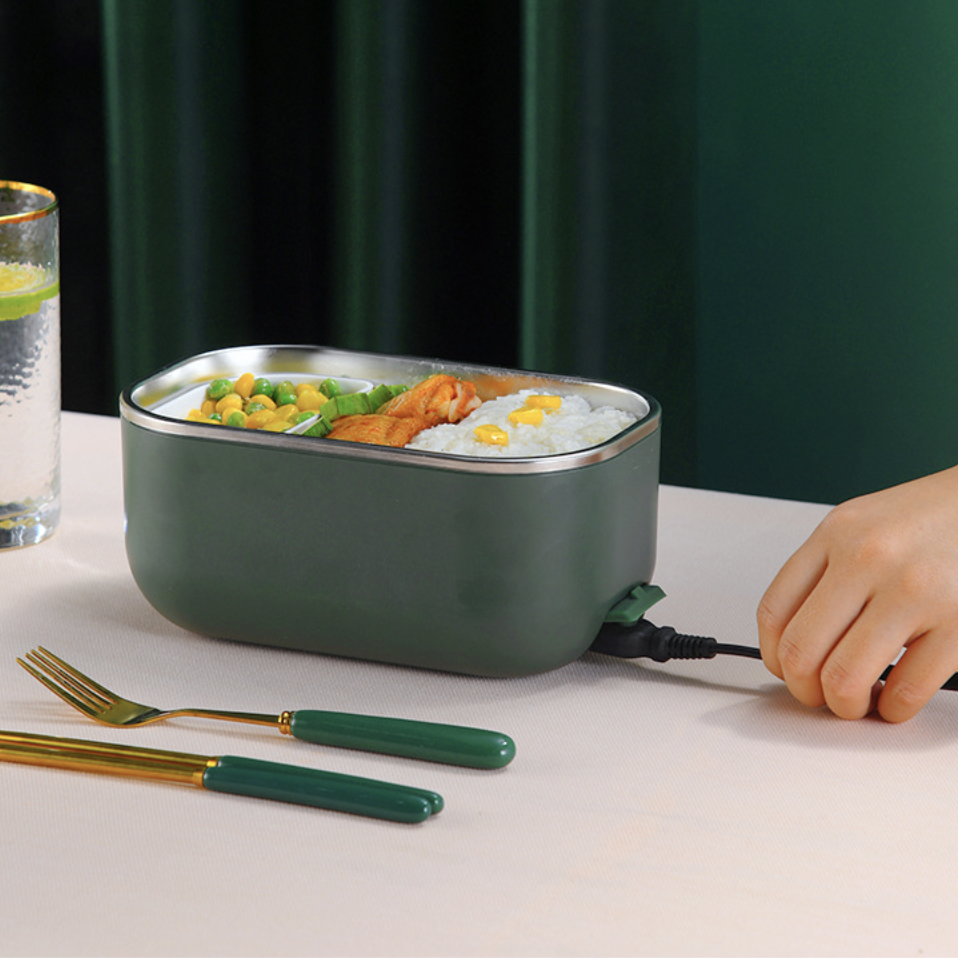 Heat meals quickly and healthily with the electric lunch box that is insulated with a sealing rubber and comes along with a dual flat-pin plug wire. The 48W-powered electric lunch box will heat up the food uniformly without causing any change to the taste of the food. The green electric lunch box is a utilitarian accessory that may be used to store food that has been cooked beforehand, which can be then heated up later when the food is going to be eaten.