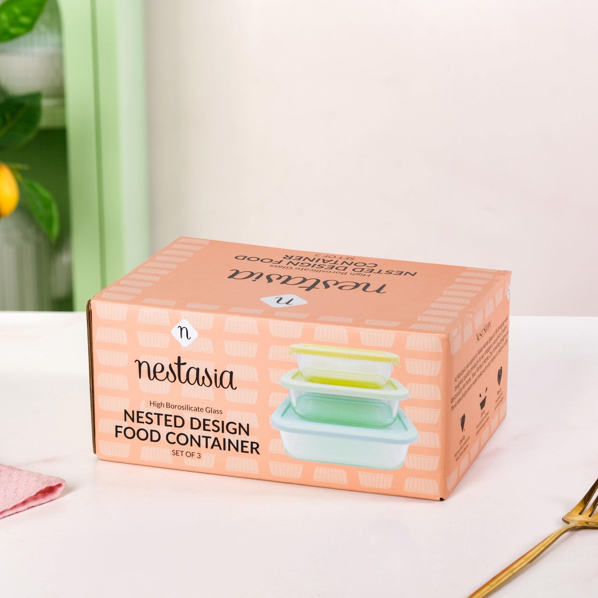 Design: The design of our borosilicate glass lunch boxes is all about modern simplicity and convenience. The set includes three rectangular containers with clear, high-quality borosilicate glass bodies. Each container is topped with a distinctively colored PE lid in a beautiful gradient of pastel yellow, mint green, and sky blue. The lids are designed with a slight protrusion on the sides, making them easy to grip and effortless to open and close.