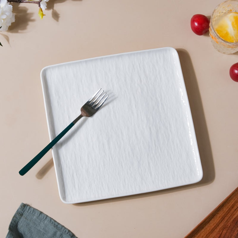 Frore Textured Square Ceramic Dinner Plate White 9.5 Inch