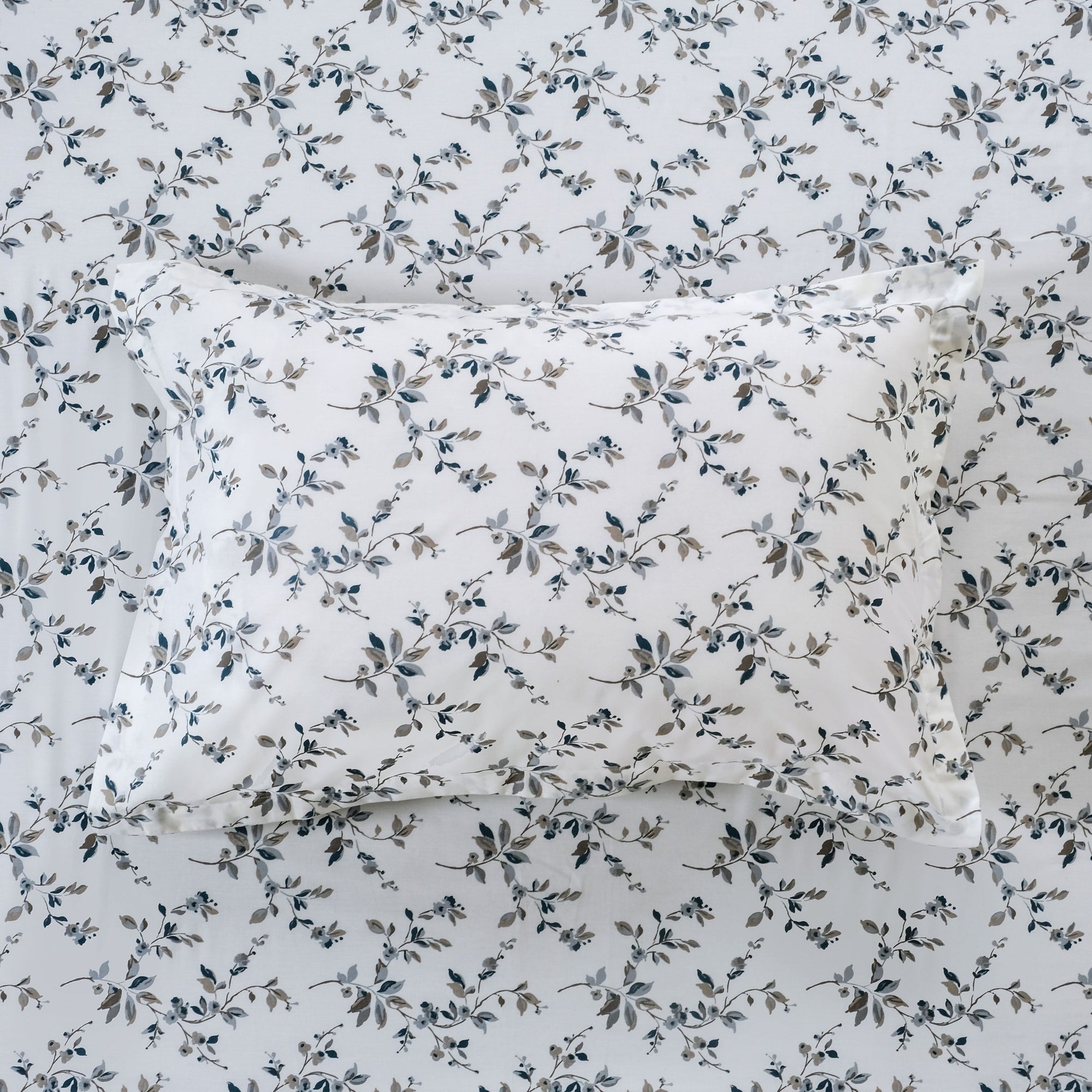 Design: Our beautiful queen-size bedsheet set features a graceful, winding vine and floral motif in a soothing palette of deep blue and cool grey foliage, detailed against a crisp white backdrop. The elegant botanical print is perfectly matched across the main bedsheet and the two included pillow covers, creating a harmonious and polished look.