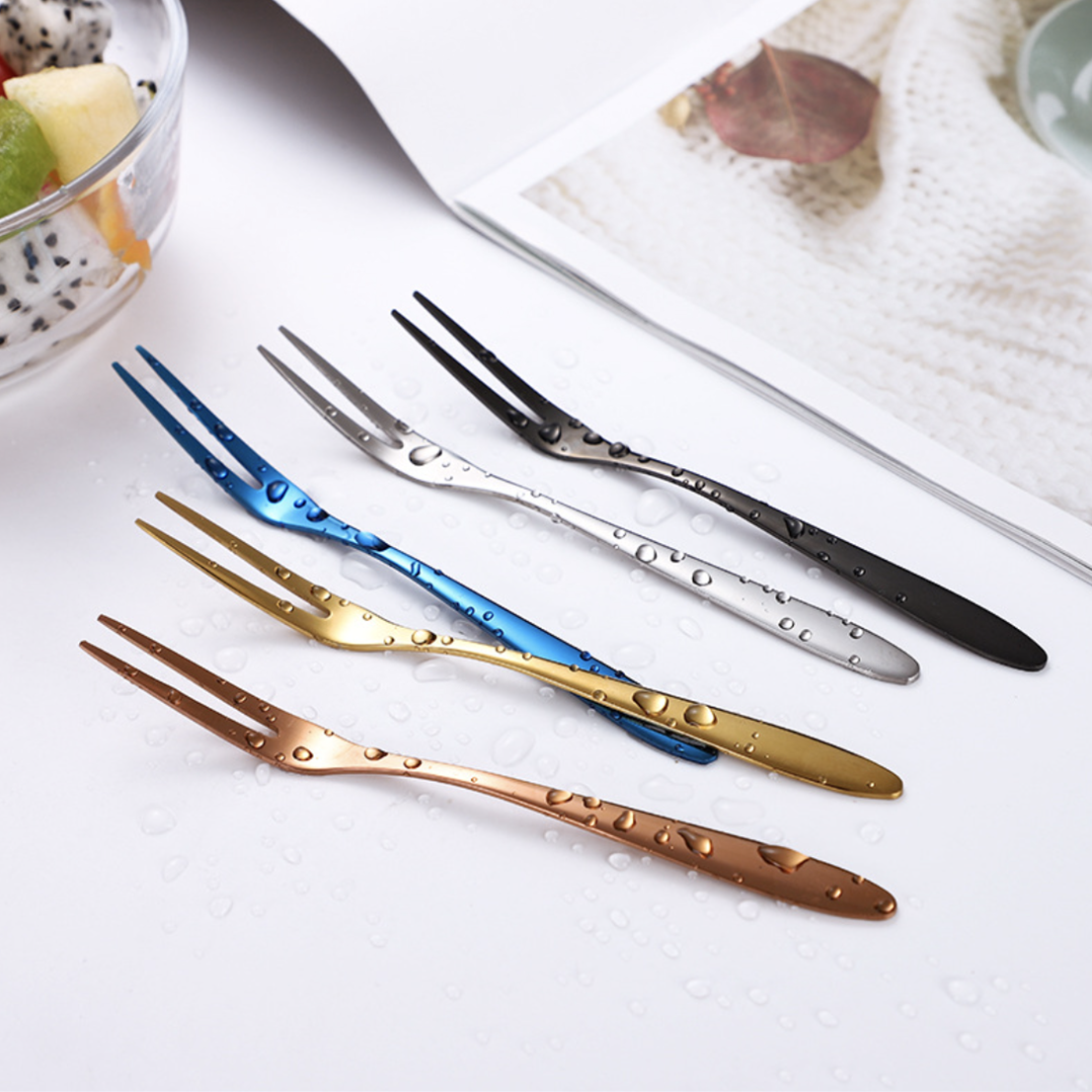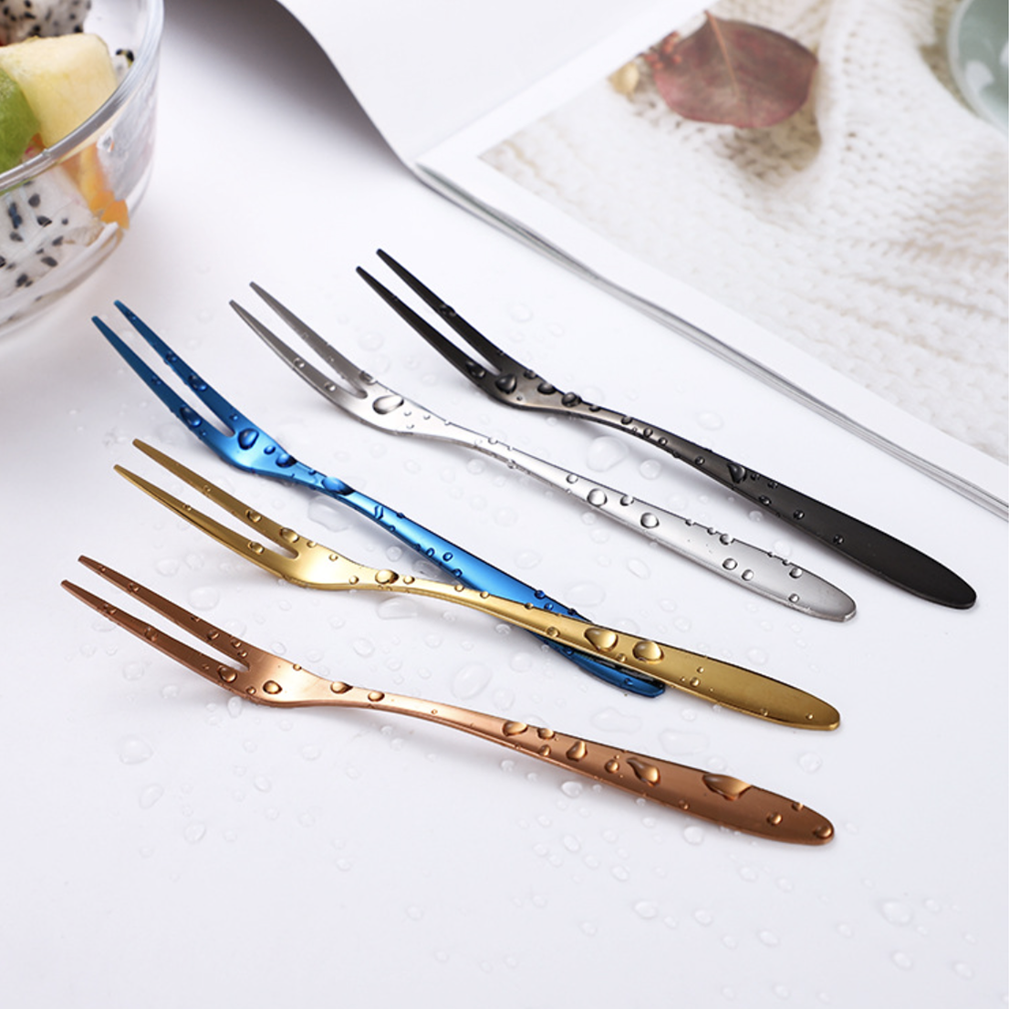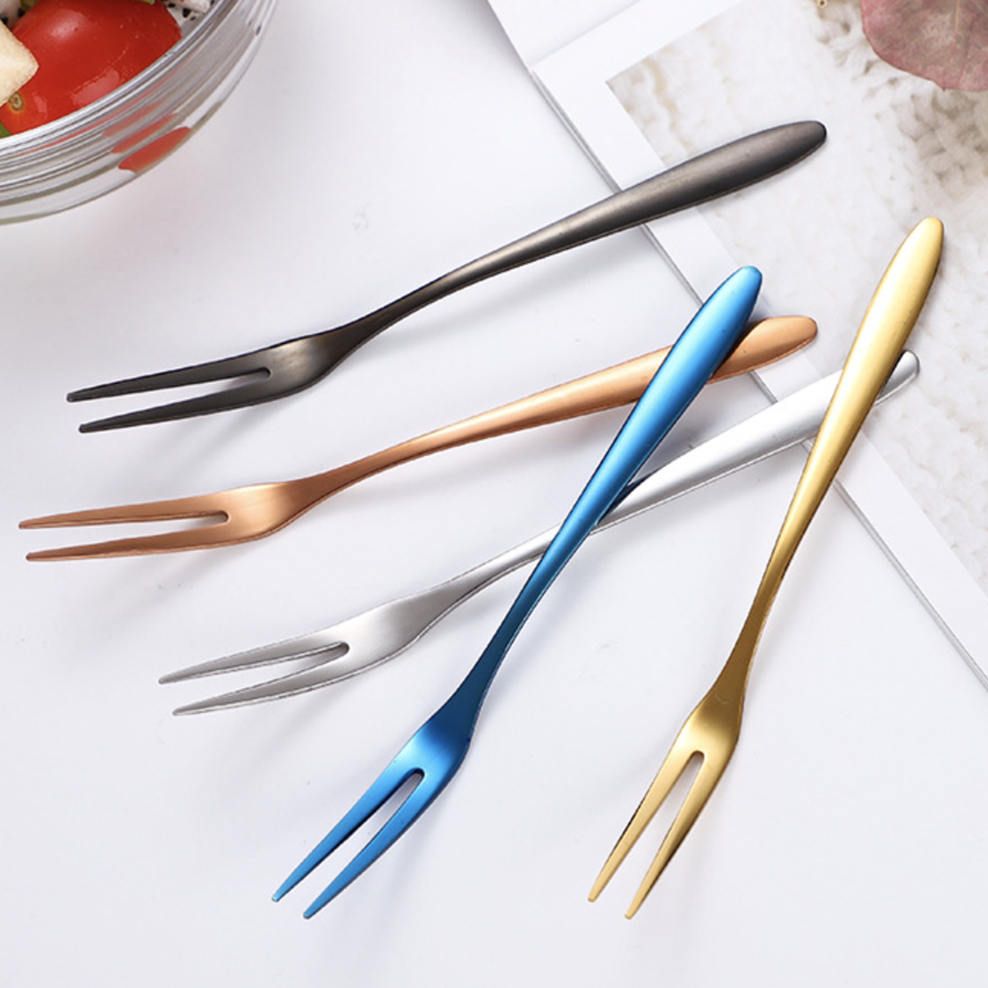Products included: 1 set of 4 fruit forks of the same color