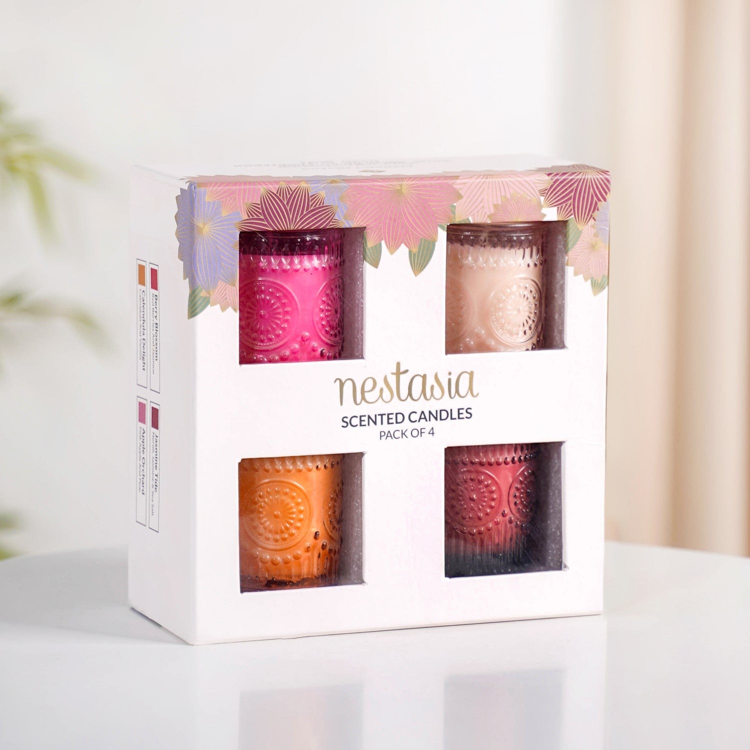 Fruity Florals Scented Candle Jars Set Of 4 With Gift Box