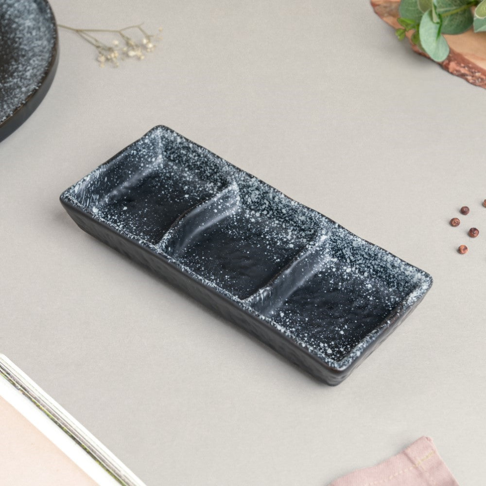 Galaxy Stone Pottery 3 Section Ceramic Dip Plate