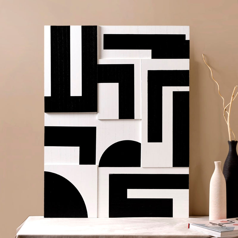 Absolutely! The bold black wooden block painting style reflects a modern and contemporary approach to art. The bold colours and forms effortlessly blend into modern interiors and can counteract the blank settings of minimalist spaces. The piece works equally well for an eclectic and maximalist setting.