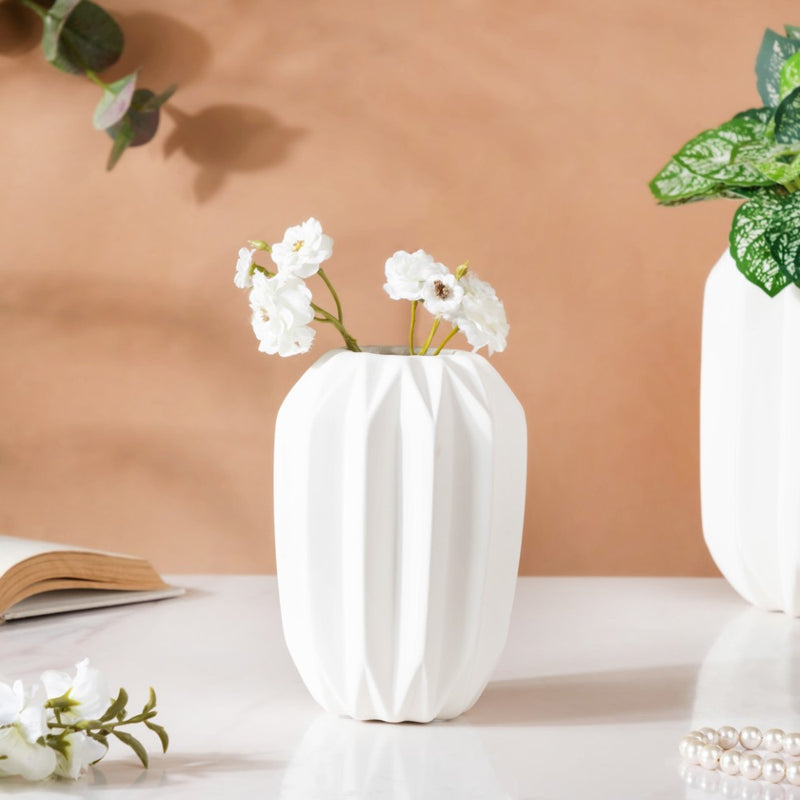 The decorative vase is a perfect pick for everything from blossoms to lush greens; this flower vase will help you decorate every corner of your house in elegance. The ceramic vase has been handcrafted with perfection in elegant color and with an intricate design to give the desired style to your interiors. The vase along with artificial flowers in the vase can be used in the decoration of rooms, tabletops, countertops, shelves, bedside tables, patios, and so on. The decorative vase can be used for gifting on several special occasions year-round, like birthdays, anniversaries, festivities, and others.