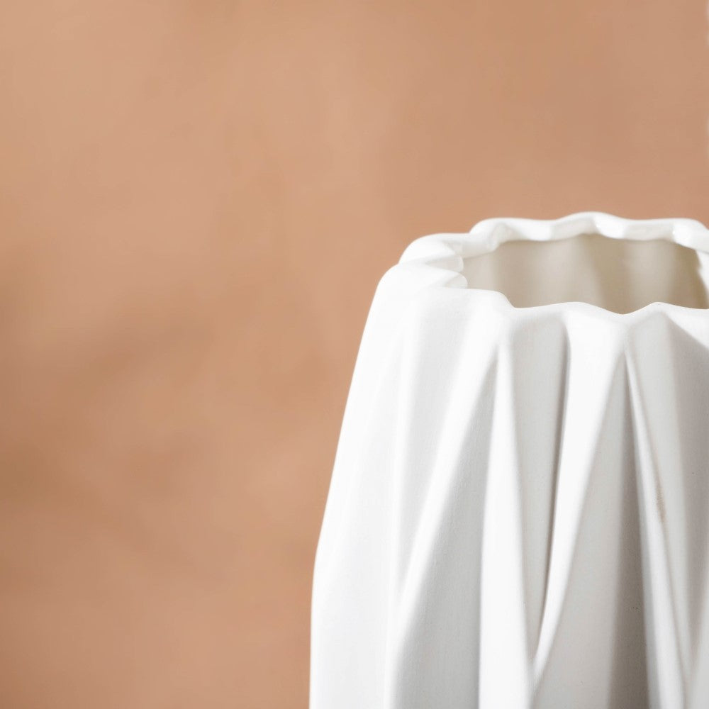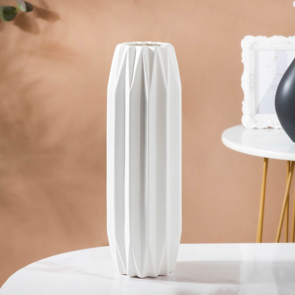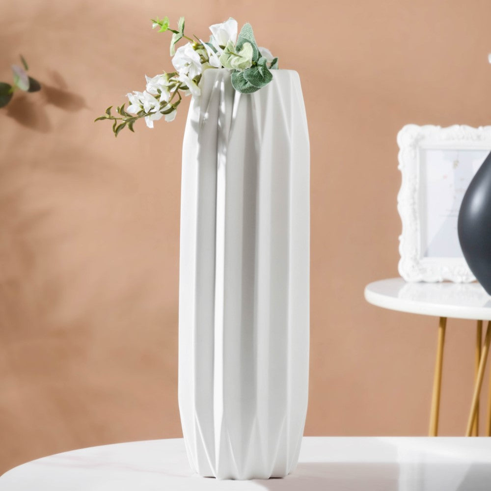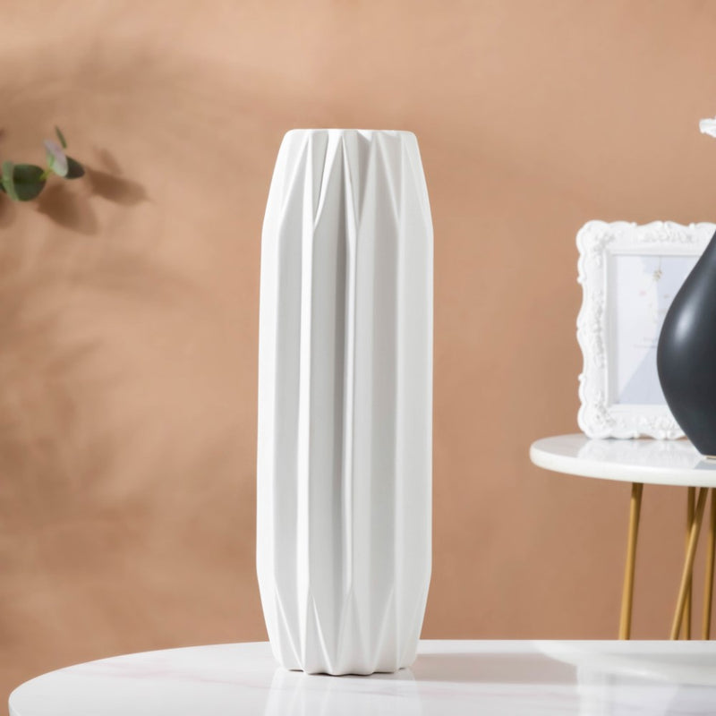 The vase has a unique texture and flowing lines that make this ceramic vase stand out. The flower vase would look stunning as a decorative piece for artificial flowers and plants from our collection. The white decorative vase will also make a stellar table centerpiece along with some artificial flowers in the vase and can be kept on the cabinets, desktops, bedside nesting, mantel, etc. The beautifully crafted flower vase can also be a thoughtful gift on several occasions like birthdays, anniversaries, housewarmings, festivals, and so on.