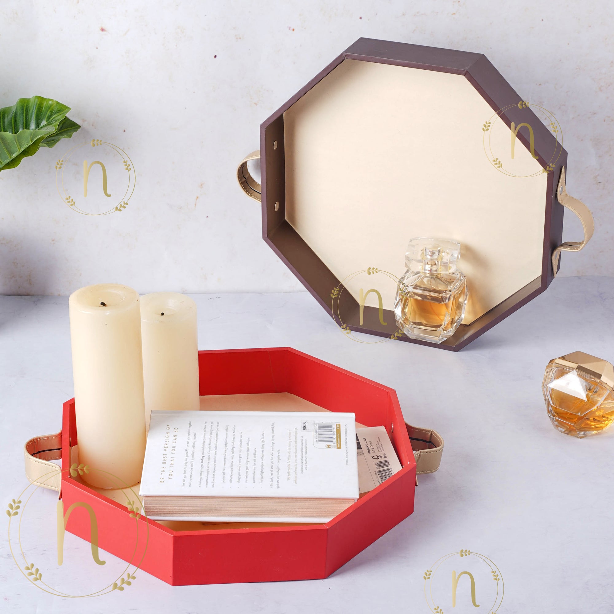 A sturdy tray in elegant contrasting hues would be a welcome addition to any home. The octagonal tray is available for purchase in two color variants- cherry red with natural and gold and brown with natural and gold. The modern tray adds a polished touch to the serve-ware collection. The amazing masterpiece is the result of the immense attention paid to minute details for a lovely finish, having been constructed through an extensive and time-consuming process of wood-cutting and hand-painting by experienced craftspeople for a modern appeal. Use the tray to serve coffee, tea, and cold beverages to visitors. Place a colorful matching tray cloth on the inside to add bright hues and pattern to the multi-utility tray.