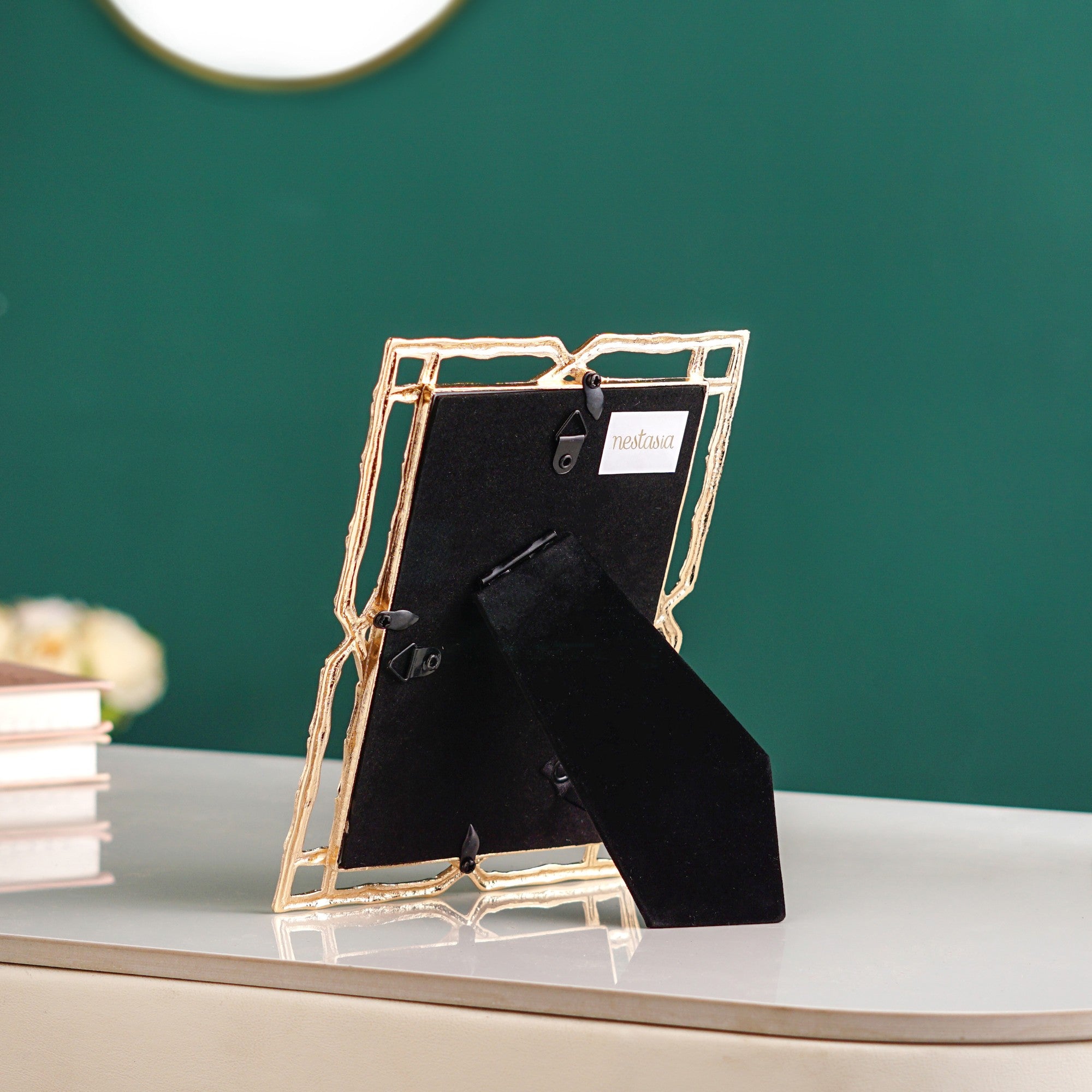 Benefits: Enjoy total flexibility with this frame. It comes with a secure, sturdy back stand with a velvet coating and a satin cord for stable placement on your desk or shelf decor. Plus, the integrated hanging hooks make it perfect for creating stylish photo frames for wall arrangements. This easy to maintain and stunning piece is the ideal photo frame for a gift for anyone looking to add a touch of global style to their space.