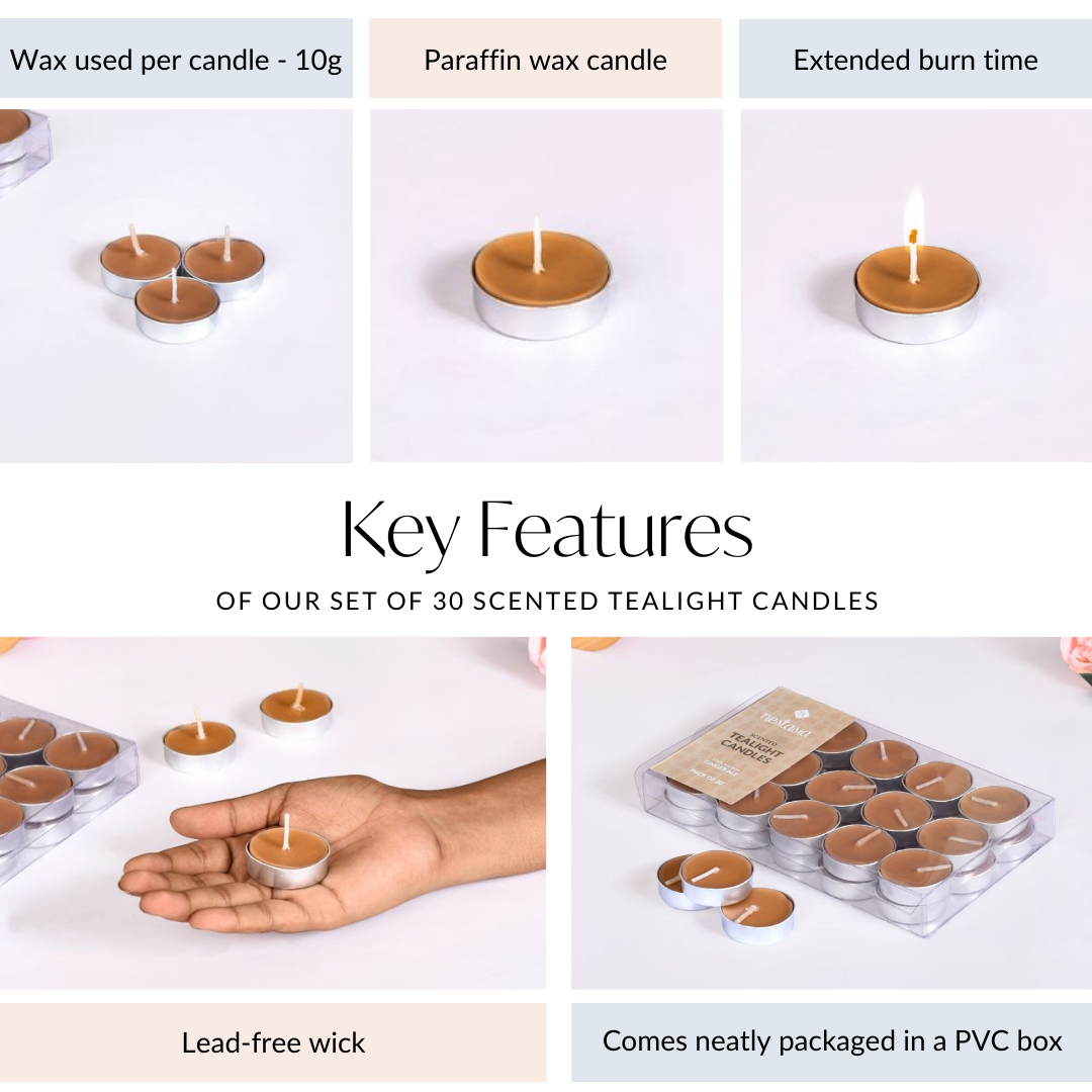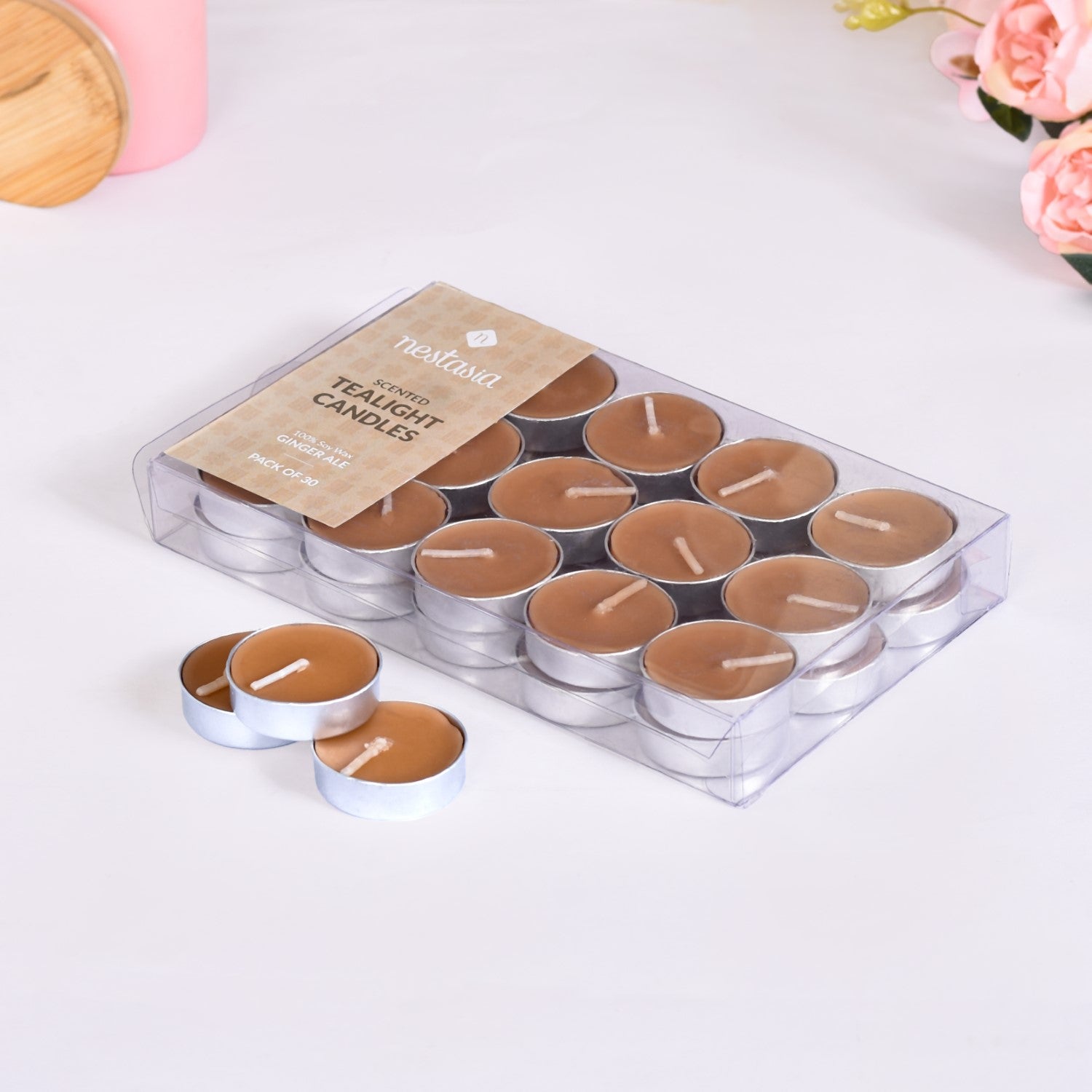 Certainly! For convenience and ease of gifting, the set of 30 ginger-scented fragrant tealights come neatly packaged in a PVC box. Whether for birthdays, holidays, or housewarmings, these candles add warmth and charm to every recipient's home.