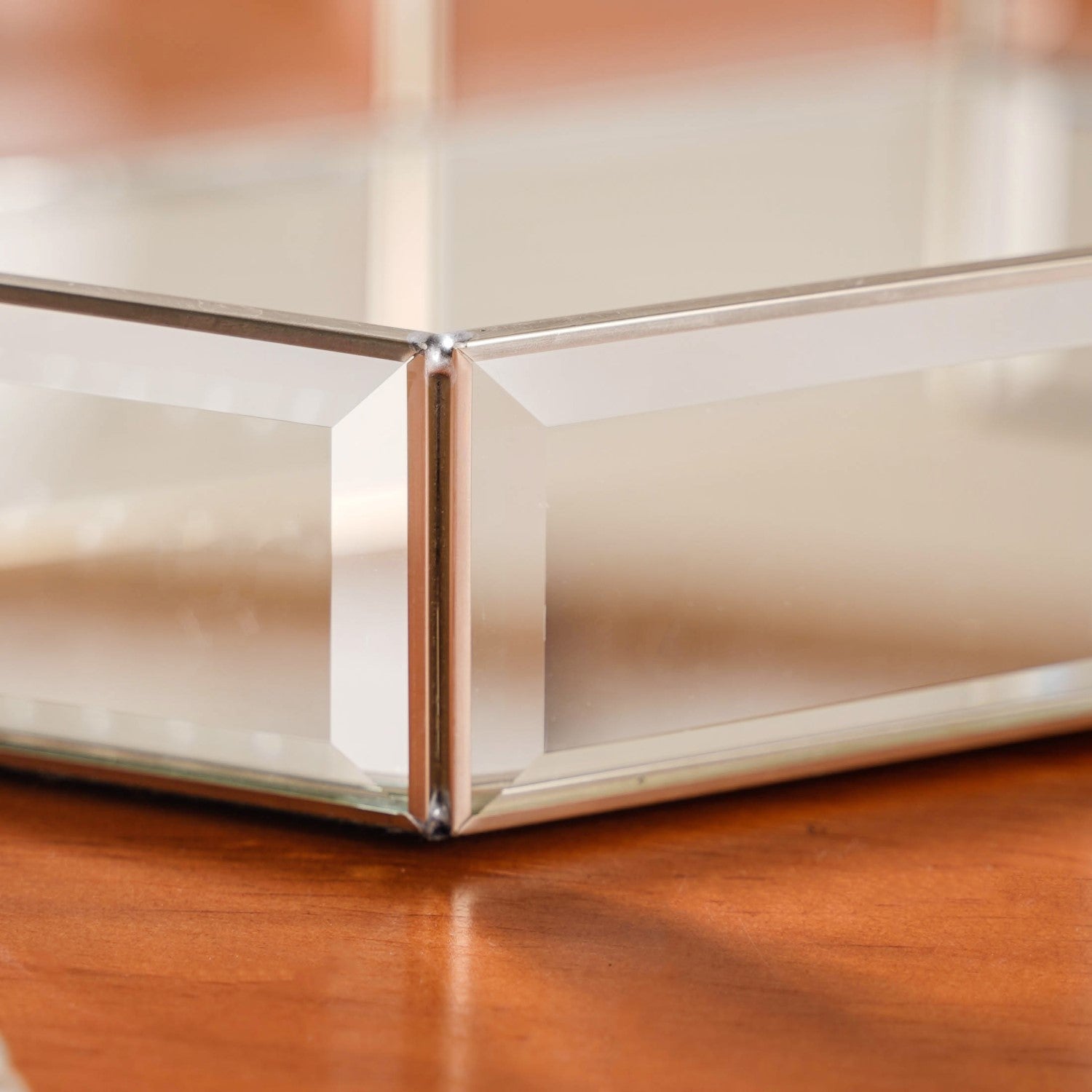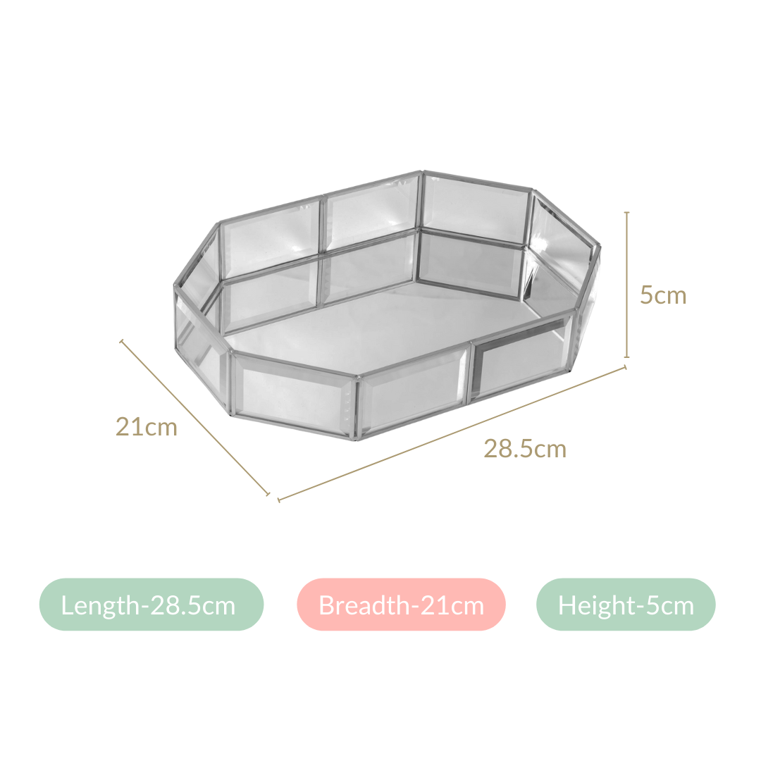 Design: Crafted from premium-quality tempered glass and enclosed by gold rust-resistant metal borders that have been expertly set by hand, this decorative tray is perfect for some glitz and glamour. The sides of the tray are adorned with bevelled glass and the base with an anti-glare mirror for crystal-clear reflection. The transparent trinket tray is complete with an anti-skid foam padding at the base, making it the ultimate blend of style and practicality.