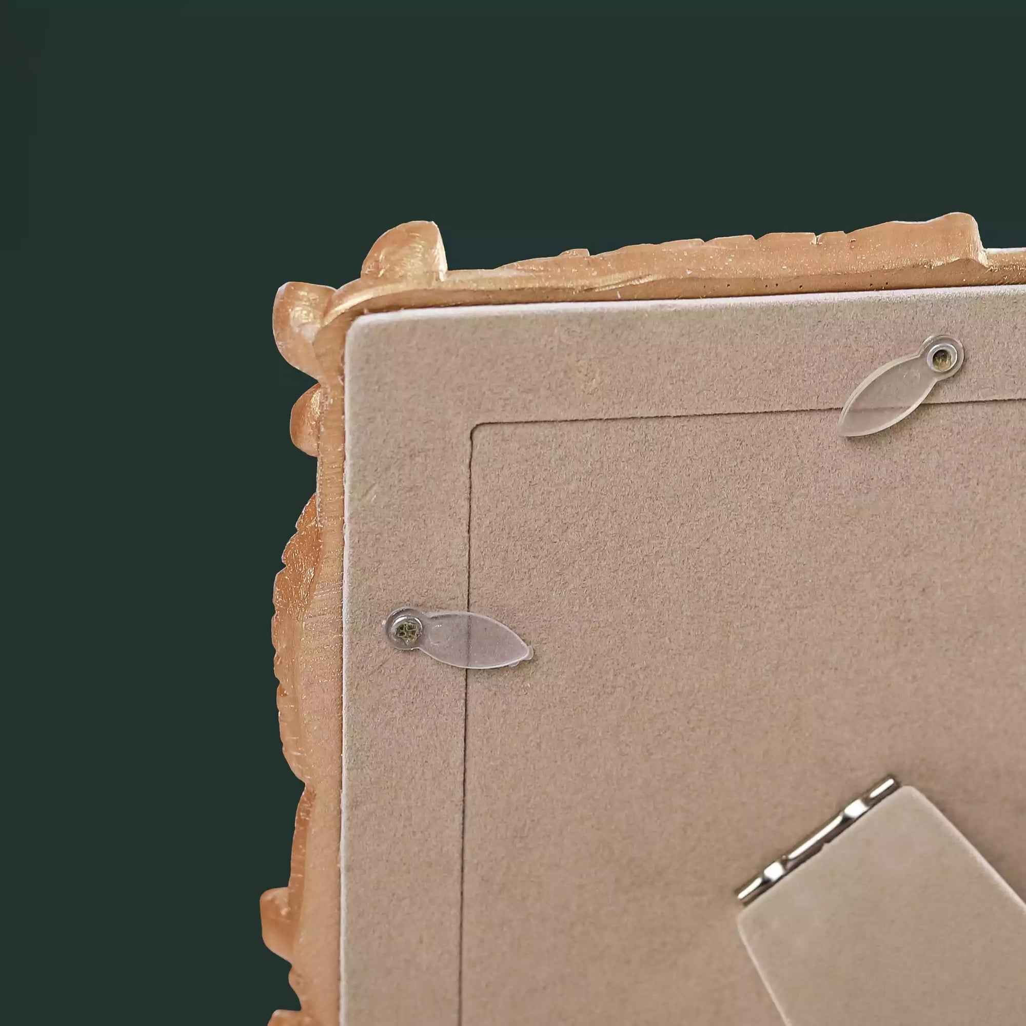 The golden tropical photo frame is crafted from premium-quality resin material, that is known for being sturdy and resilient and is capable of withstanding the test of time. Whether displayed on the side table, bedside table, or hung as a wall decor, the photo frame maintains its structural integrity and elegance.