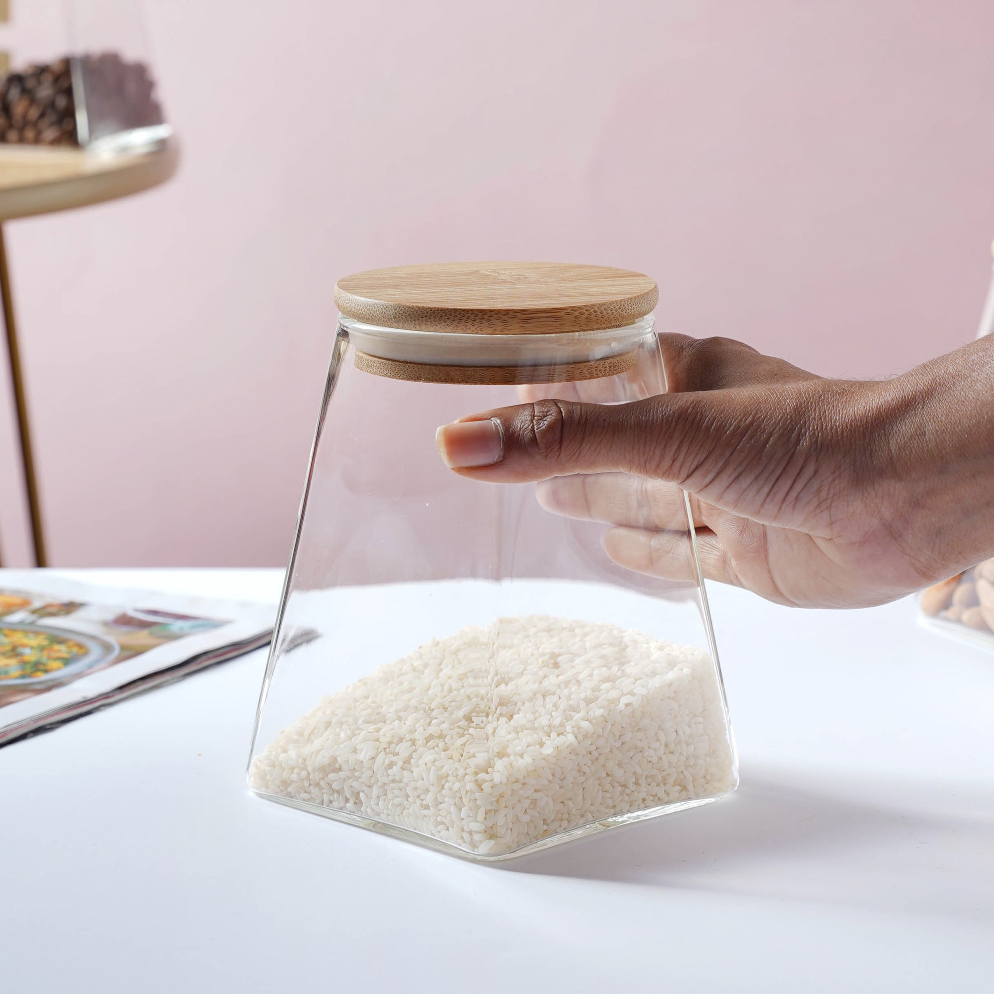 Storage jars can provide a simple solution to a lot of snack-storing issues. The airtight jars with a wooden lid and silicone gasket that seals the containers help keep the chips, nachos, and dry fruits fresh and crispy as ever. The jars are glass-blown in a unique shape and have perfectly fitting lids. The well-polished jars look aesthetic on the dining table, coffee table, as well as office desk. The containers make the perfect partners for binge eating while watching a movie, or just in case one has had a bad day.