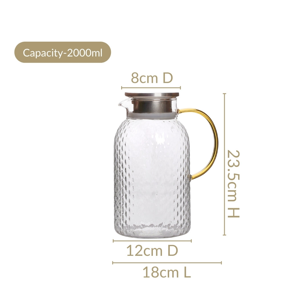 Benefits: This tall jug, made from high-quality borosilicate glass, combines everyday practicality, offering generous capacity and durability for both hot and cold drinks. Its dual-opening strainer lid allows mess-free pouring of infused or regular beverages, while the ergonomic handle ensures a secure grip. Made from heat-resistant borosilicate glass and dishwasher-safe, it’s perfect for daily use.