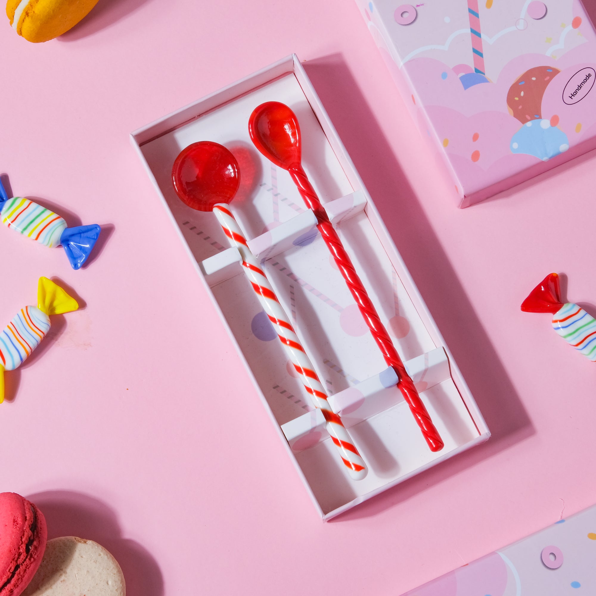 A shot of cherry is a must for any food or drink to be a "cherry on top" of a party. The scarlet pair is at service. The set of 2 red and white colored stirrers is made of durable and non-toxic glass. The set features a red colored stirrer while the other one is a combination of red and white, cascading in a spiral motion. The red and white stirrer set exudes the Christmas vibe, hence you know what's the best time to put them in use.