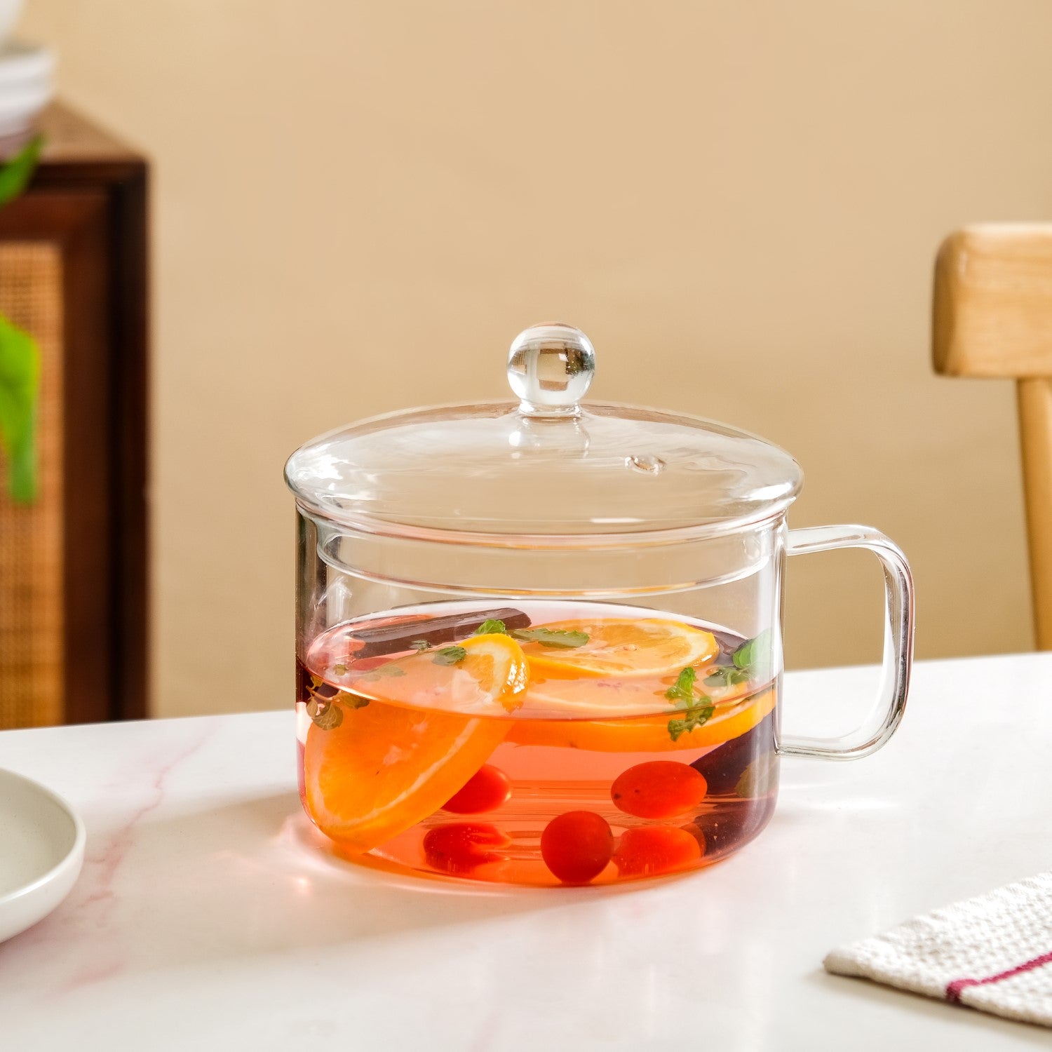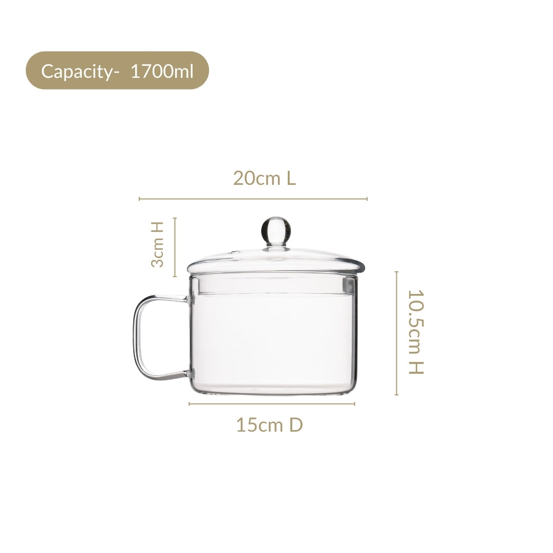 Benefits: This glass cooking pot offers more than just visual appeal. It brings practical advantages to everyday cooking. The borosilicate glass body is heat-resistant, making it safe for open flame or stovetop use while retaining heat efficiently for even cooking. Its transparency allows you to monitor your food without lifting the lid, preserving moisture and flavour. Non-reactive and toxin-free, it’s ideal for cooking and serving everything from soups and stews to noodles and curries. Plus, it’s easy to clean, doesn’t absorb odours, and adds a modern touch to your kitchen-to-table experience.