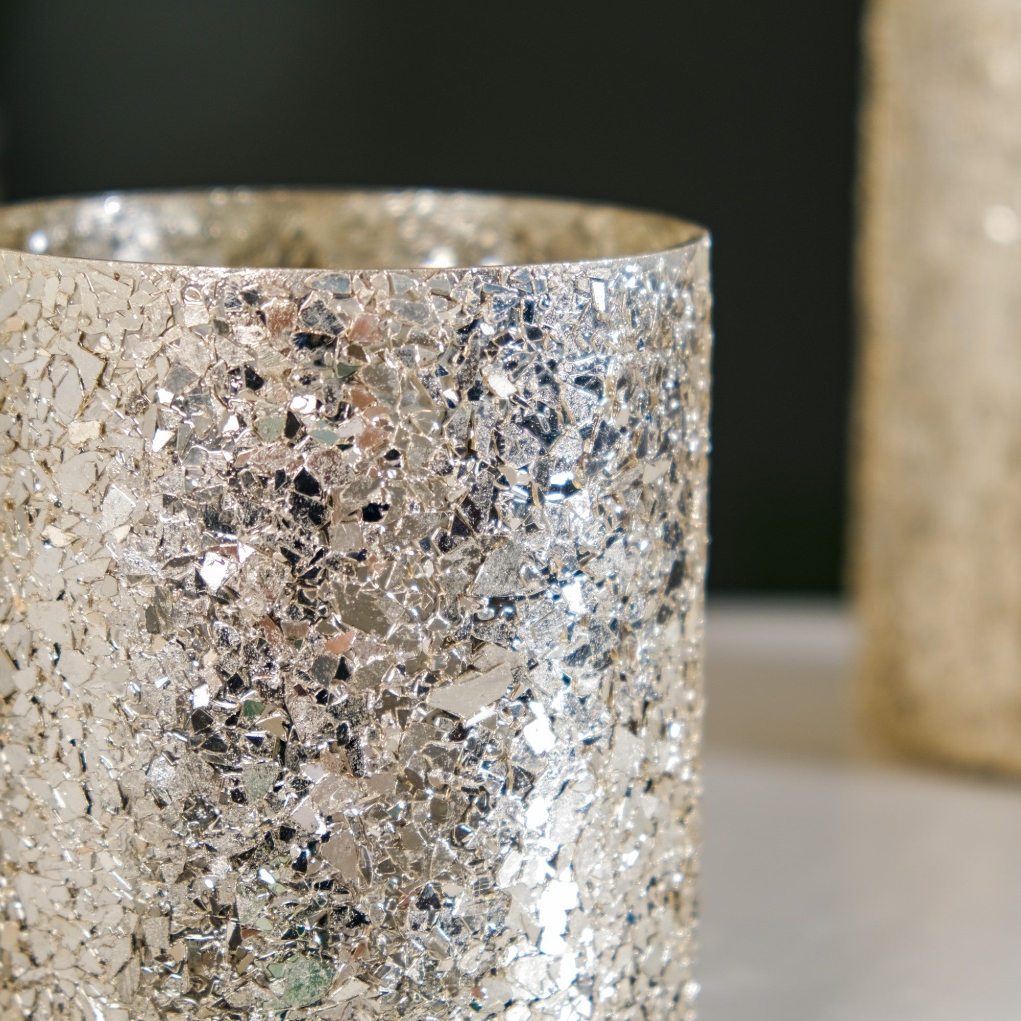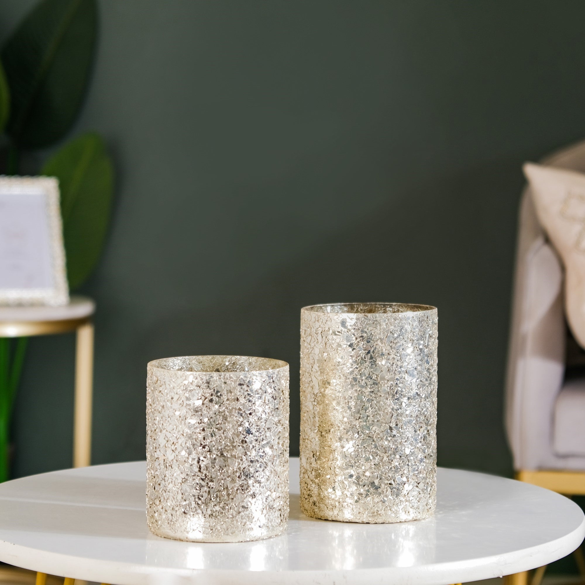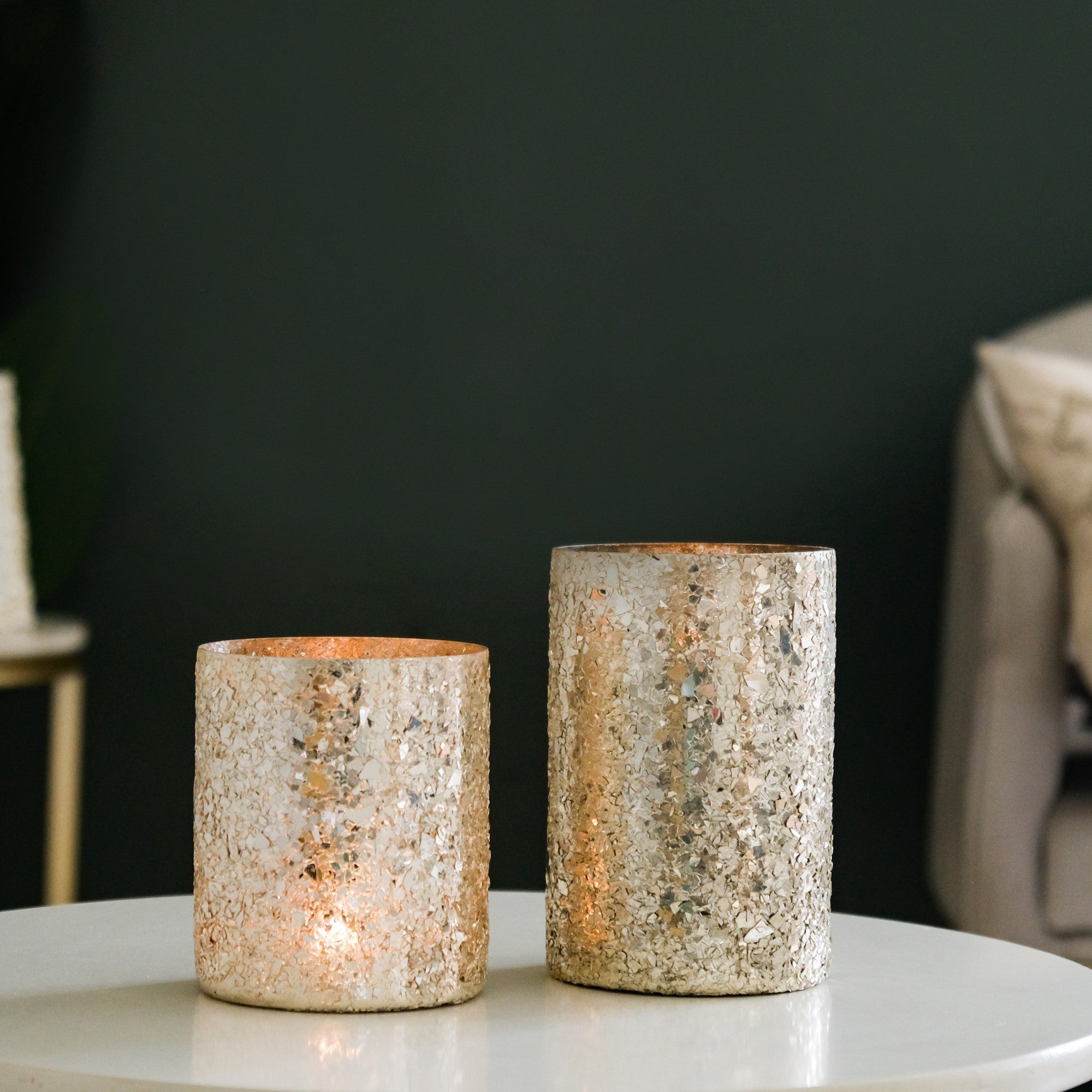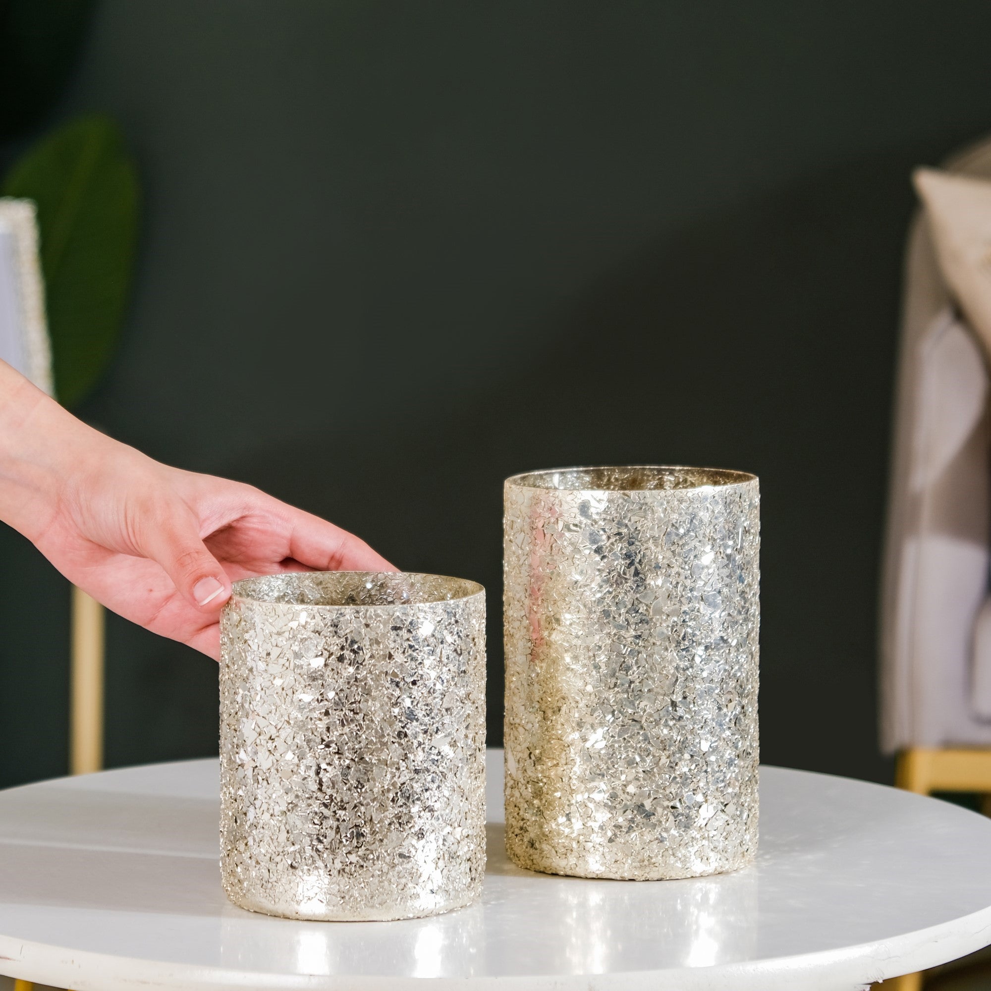 Introducing the perfect addition to your home decor collection- a set of 2 glass votives (one big and one small), beautifully crafted to adorn your living space. The glass ball structure gives it a luxurious touch, making it an ideal decor item for special occasions like festivals and ceremonies. Made with high-quality glass, these candle votives are highly durable and perfect for everyday use as well as for special occasions that call for a grand celebration. You can use them to light up scented candles or simply as decoration pieces to enhance your room design. These votives are also great for gifting to your cherished ones, whether it's for their home interior design, coffee table decor, living room decor, or pooja room design. Use them as table centerpieces, or anywhere in your home to add a touch of elegance and aesthetic appeal. Bring home these stunning decoration items and elevate your house decor with their exquisite charm and beauty. Features: -Premium quality -Handmade, artisanal -Excellent craftsmanship -Unique design -Luxurious -Set of 2 -Anti-tarnish -Perfect for gifting -Perfect for coffee table, pooja room, living room decor Nestip: The set of 2 glass votives can be an outstanding Diwali gift for your sibling. Size: Large- 10cm D x 16cm H Small- 10cm D x 12cm H Colour: Silver Material: Glass Products included: Set of 2 glass votives Style: GL46NSI03
