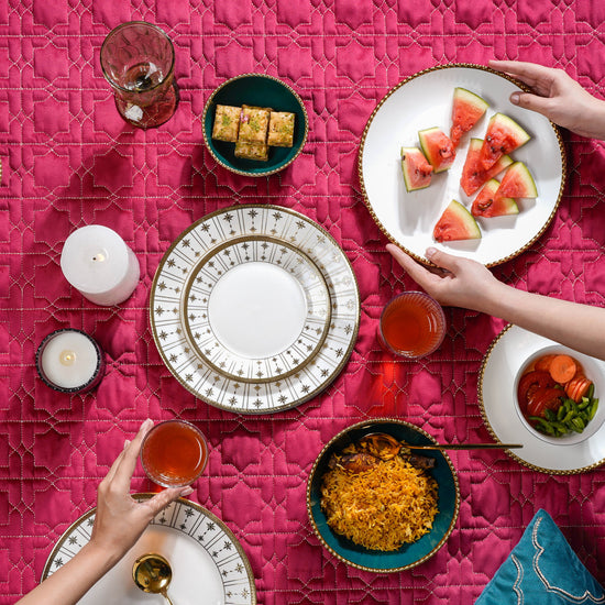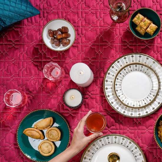 The glossy green dinner plate is made of ceramic and features gold accents. When not in use, it may be used as a lovely decorative item. For added aesthetic appeal in your dining or living area, display it on a plate stand or use it as a centrepiece.