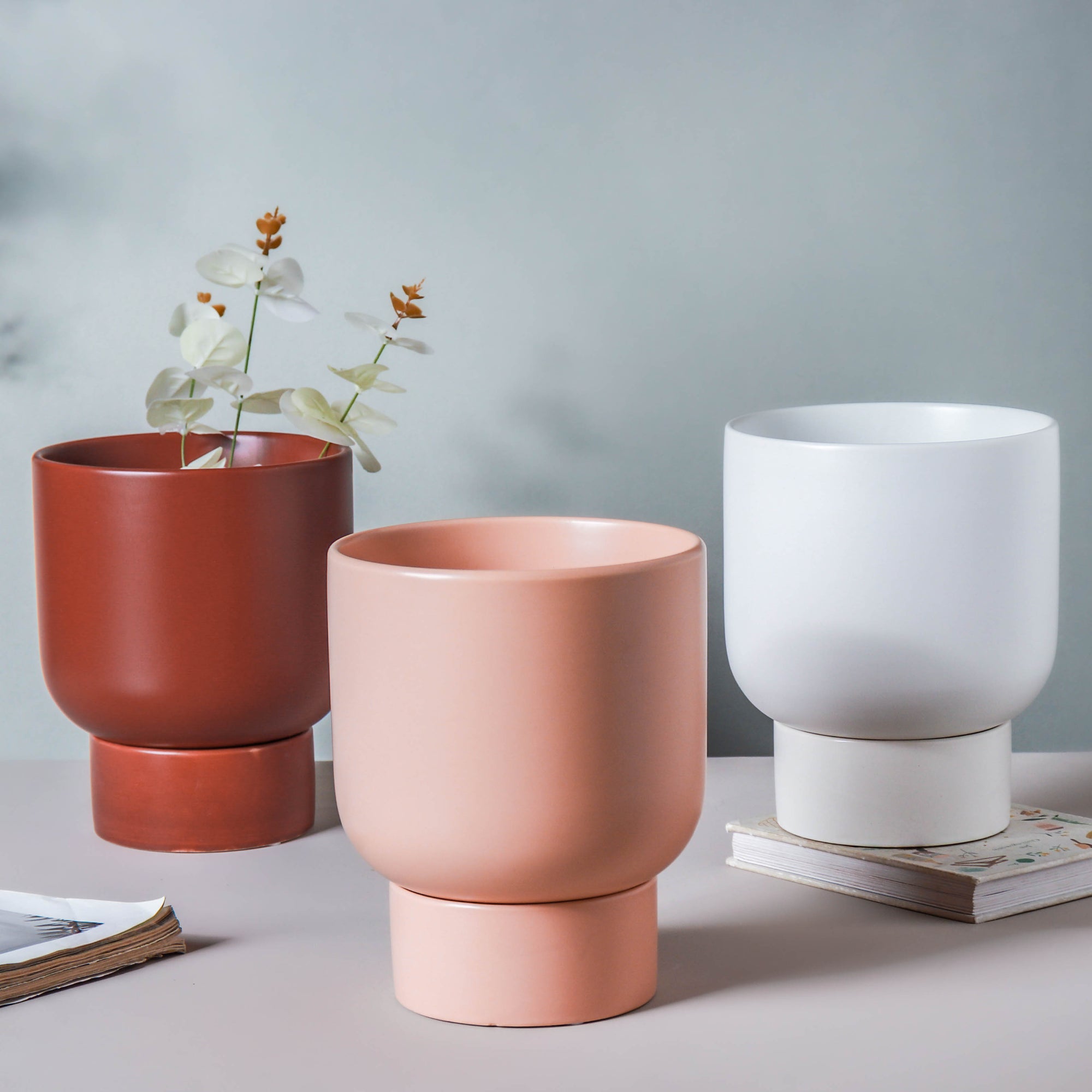 Want to add something refreshing and charming to your home decor? The gorgeous Nordic style planter for homes and offices will make a great friend to the decor of one's house. Meticulously crafted in ceramic, the planters are given a smooth gloss finish making them worthy of adding to both large and small spaces. Add definition and style to empty house corners using the monotoned planters with stands in subtle hues. Nestip: Place green leaves in the planter to give the decor a dramatic touch.