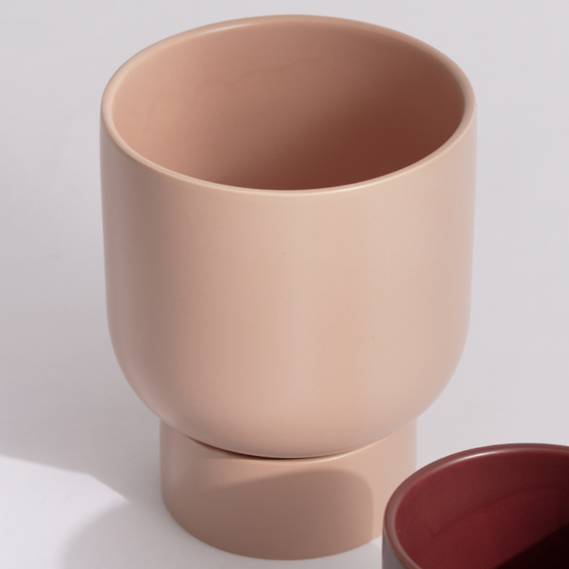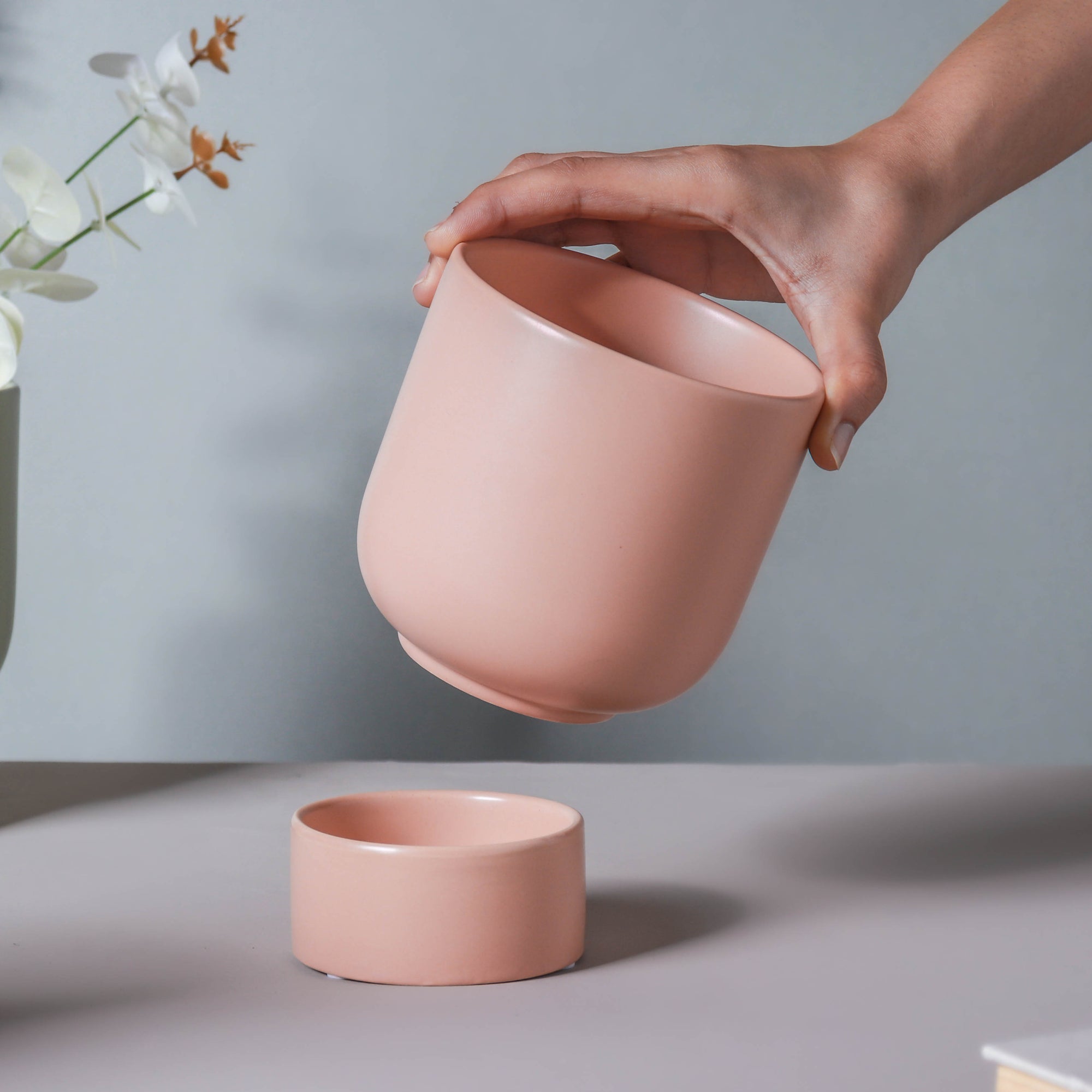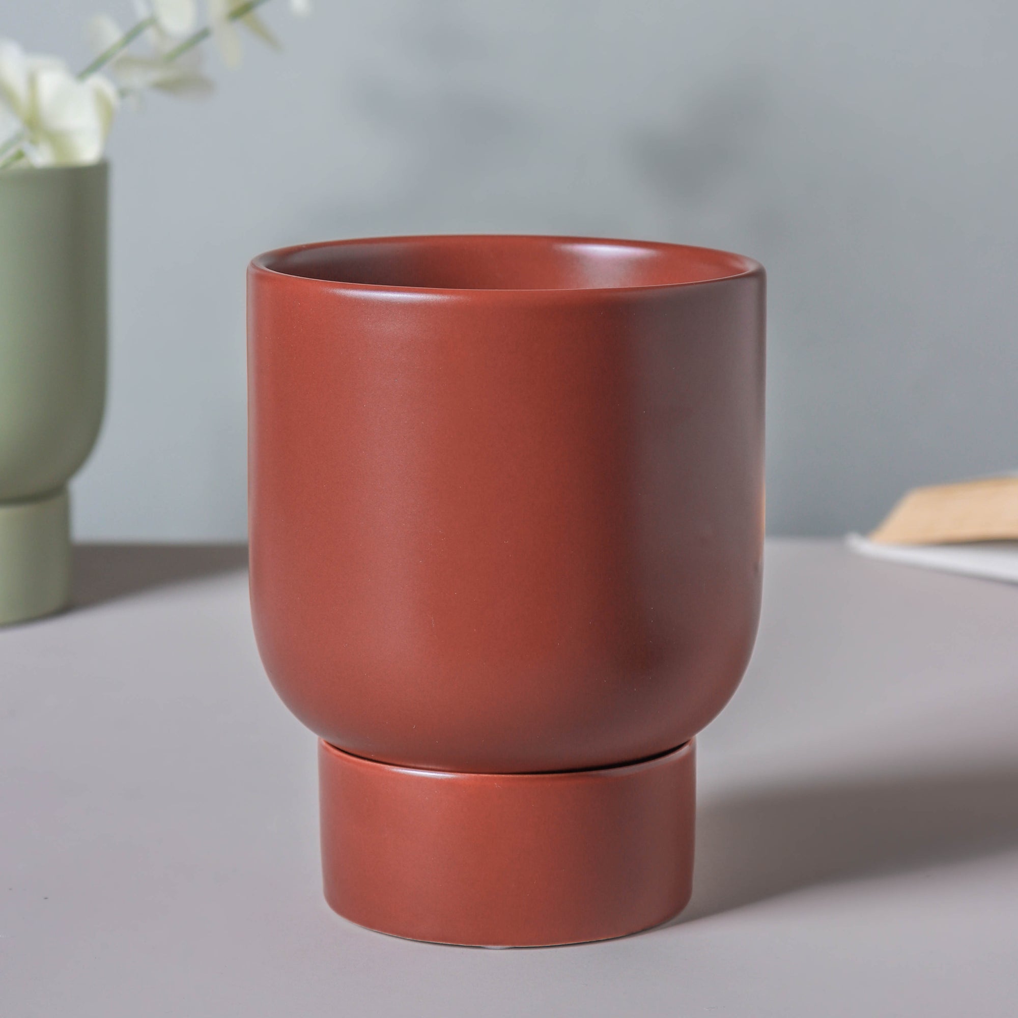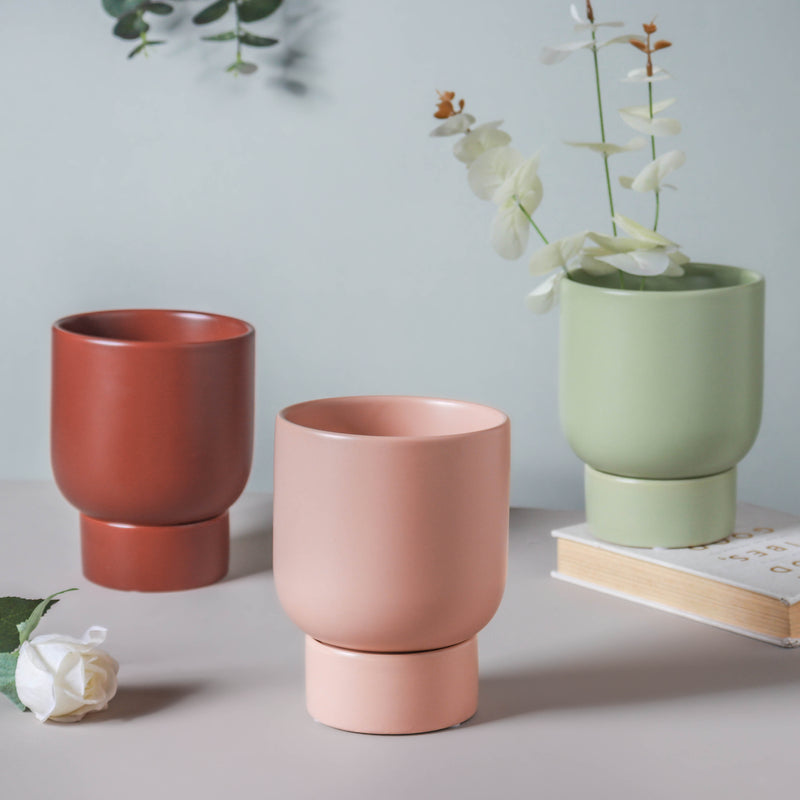 The round ceramic planters with a stand come in three distinct shades of sea green, light pink, and maroon. The smooth and glossy finish renders a classy and modern appeal to the pots. Combine all three pots of the same design but different colors to create a contrast in the living room. The planter pot comes with a stand which creates an overall look for a suitable tabletop decor. The planter can be placed both indoors and outdoors as its stark gloss finish hues add appeal and charm to any dull space, brightening it up.