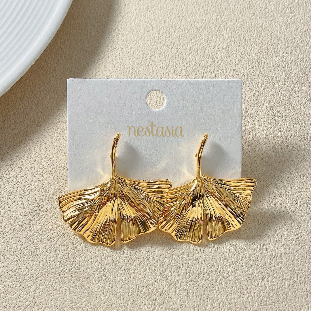 Nestyle: Team the Ginkgo leaf earrings with a black leather jacket and a high-waisted skirt. Style your hair in a messy top knot or a tousled lob to add an edgy yet sophisticated vibe.