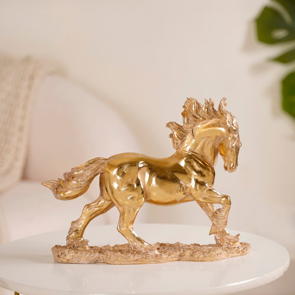 This elegant Gold Horse Decor Sculpture has a lustrous gold finish that allows you to display it in a variety of settings and also makes it suitable and eye-catching for a variety of settings. So, if you are thinking of choosing this Gold Horse Decor Sculpture for your office, go ahead! This showpiece is an ideal choice for professional settings. Its dynamic and sophisticated appearance adds a touch of refinement to offices, reception areas, or conference rooms, making a lasting impression on clients and visitors.