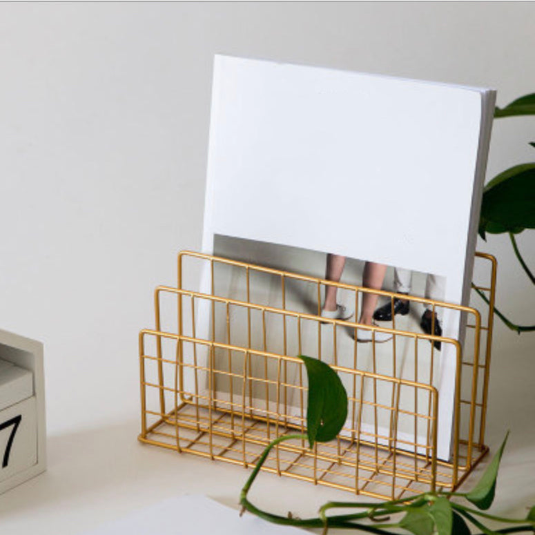 The gold wire magazine rack to organise newspaper and magazine for an orderly sophisticated look. This organiser rack can be used in offices, libraries, lobbies or any space that keeps magazines and papers.