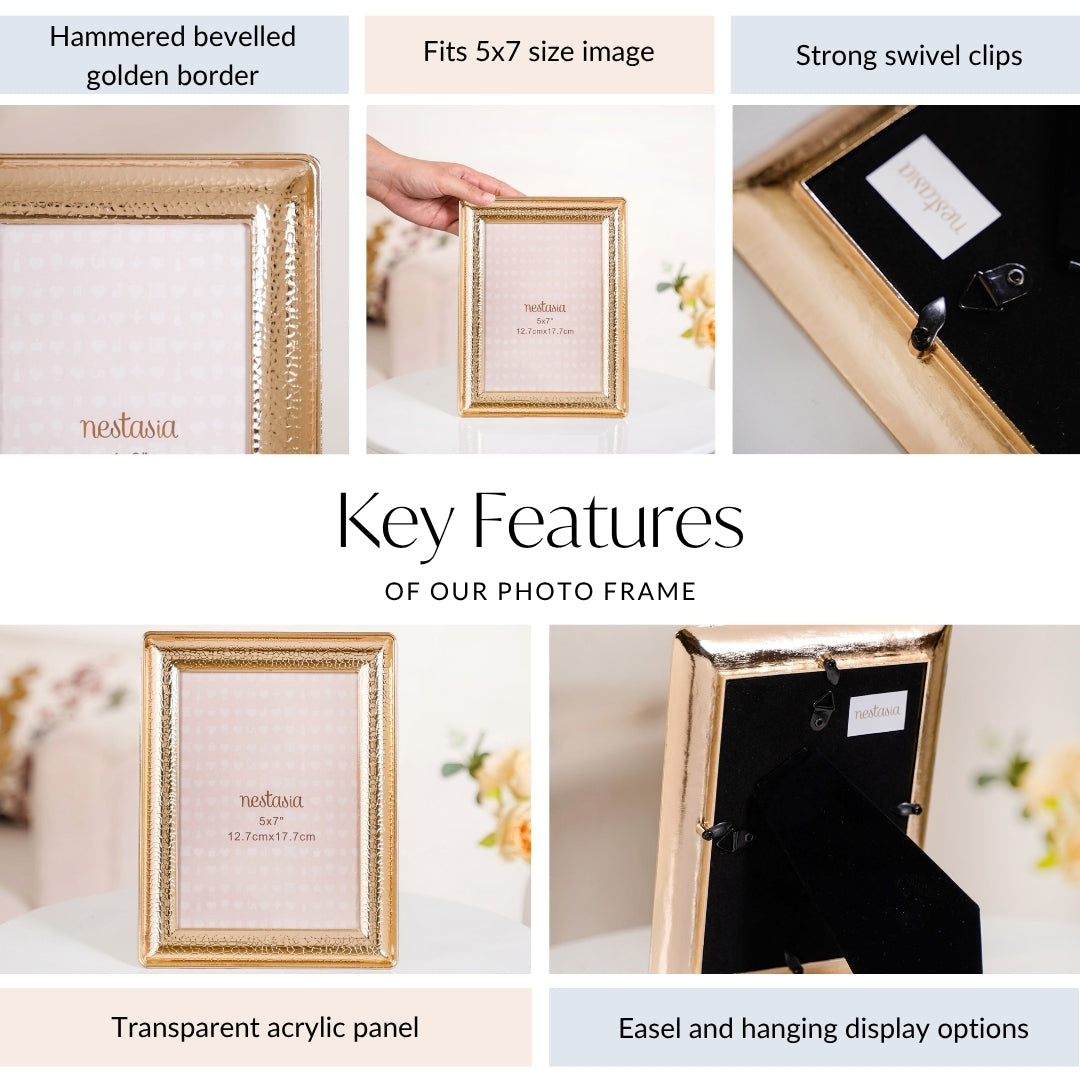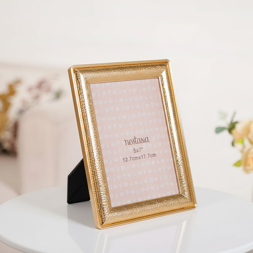Let your cherished snapshots shine brighter in this radiant golden frame. This frame is perfect for displaying 5X7" photos.