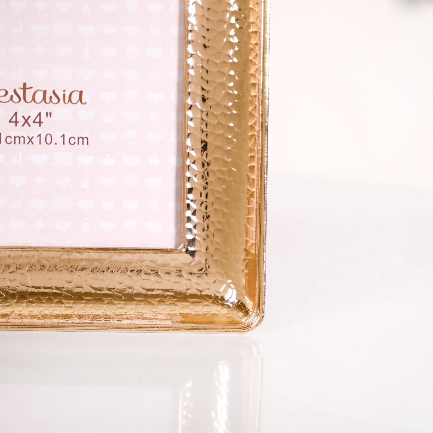 Design: This stunning rectangular photo frame flaunts a radiant gold finish with a wide, bevelled border crafted from textured resin, creating a luxurious hammered-metallic look. The smooth inner rim contrasts beautifully with the bold edges, while the crystal-clear acrylic front keeps every detail in focus. Complete with a plush velvet back and a sturdy stand, it brings instant elegance to consoles, shelves, or tabletops.