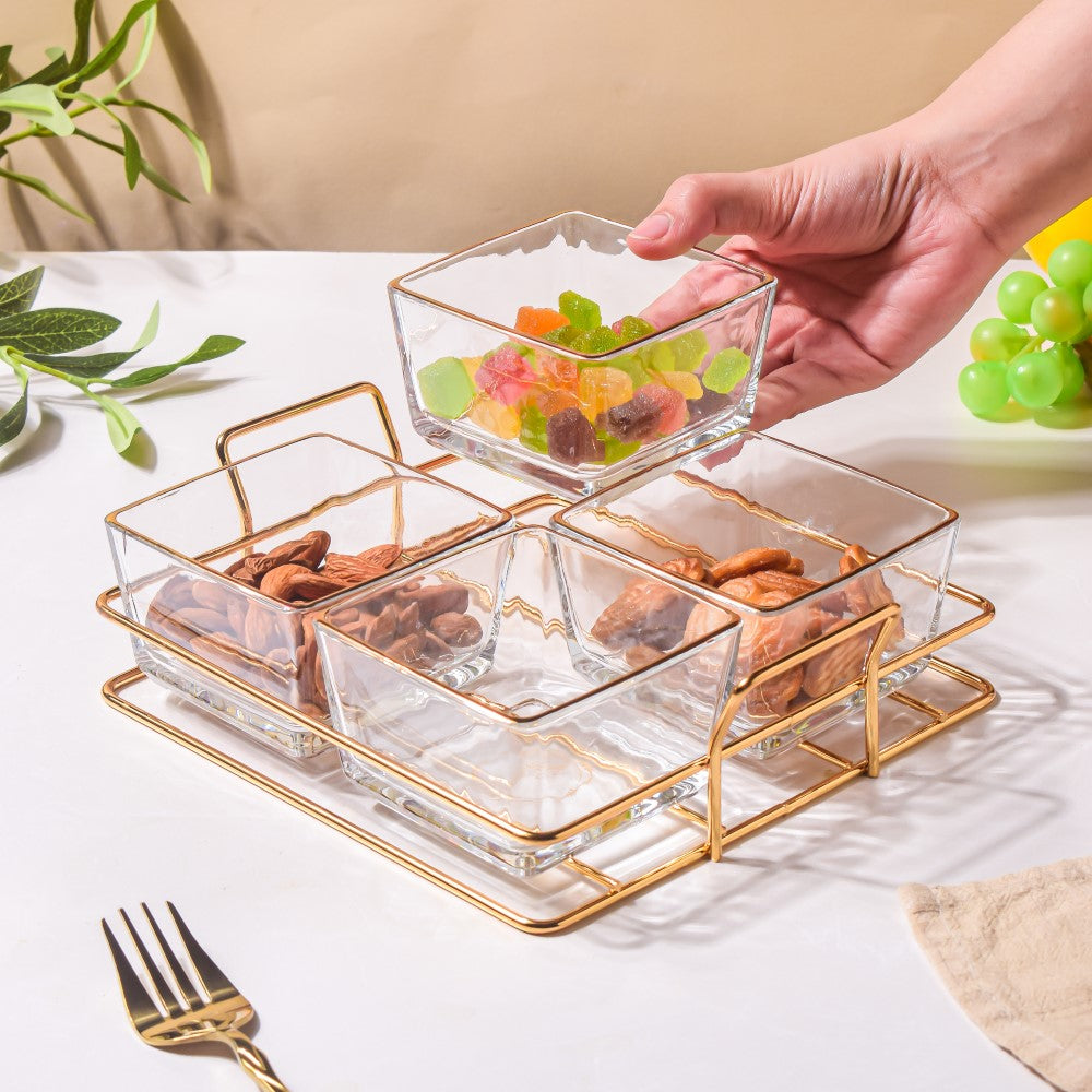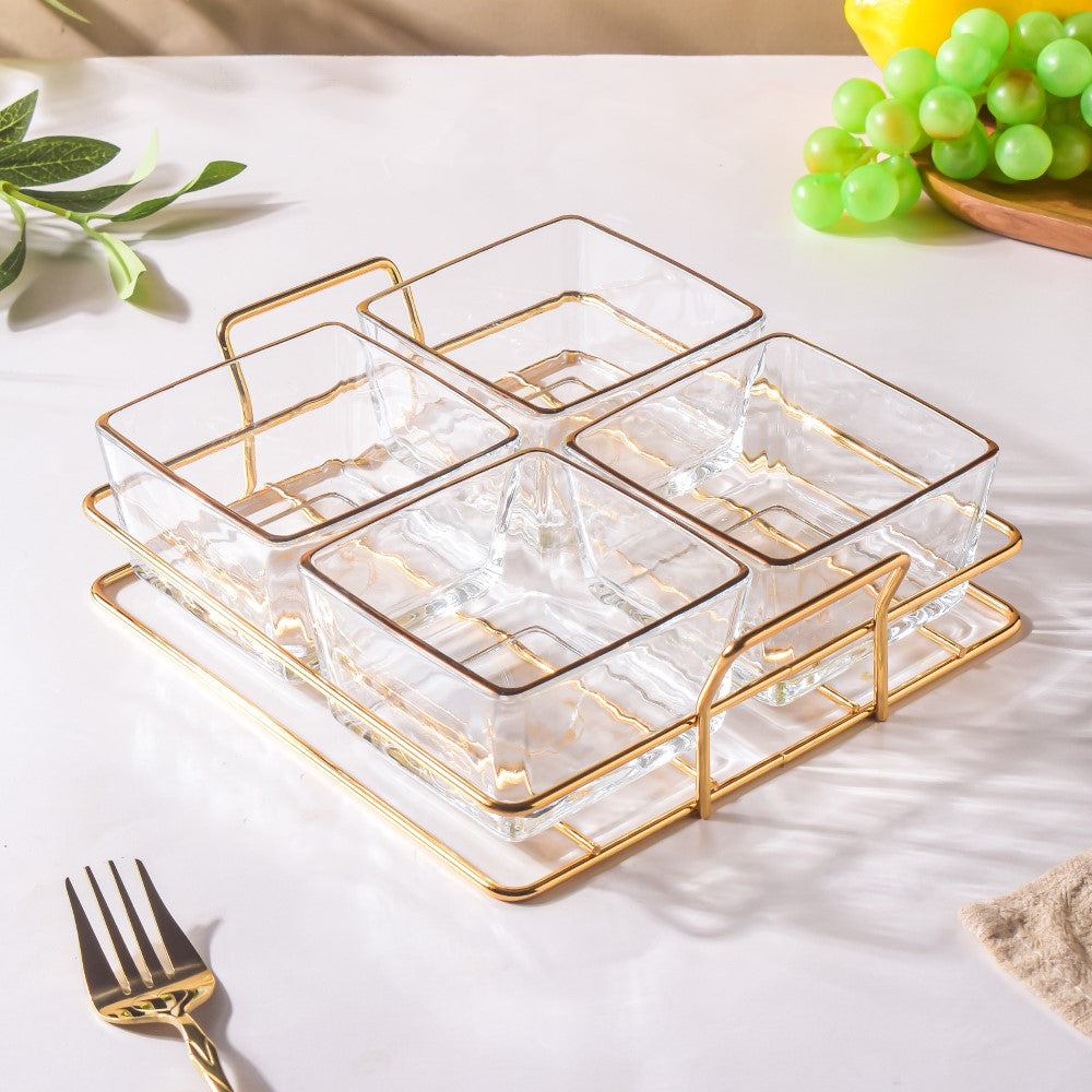 Gold Rim Crystal Bowls Tray Set Of 5 200ml