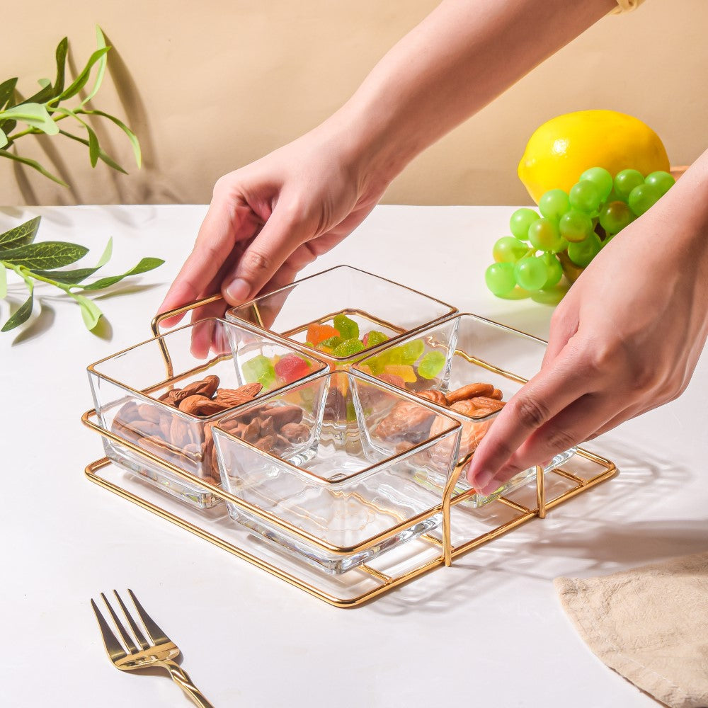 Everything good must be shared in two. Ice creams, and pastries, tastes sweeter when shared with cherished ones. These bowls are perfect for the purpose. The square glass bowls are spacious enough to hold a scoop of ice creams or other sweet treats for you and your better half, and the tray can help while serving them together. So, cheers with the bowls and start the movie night with ice creams and gold detailed glass bowls.