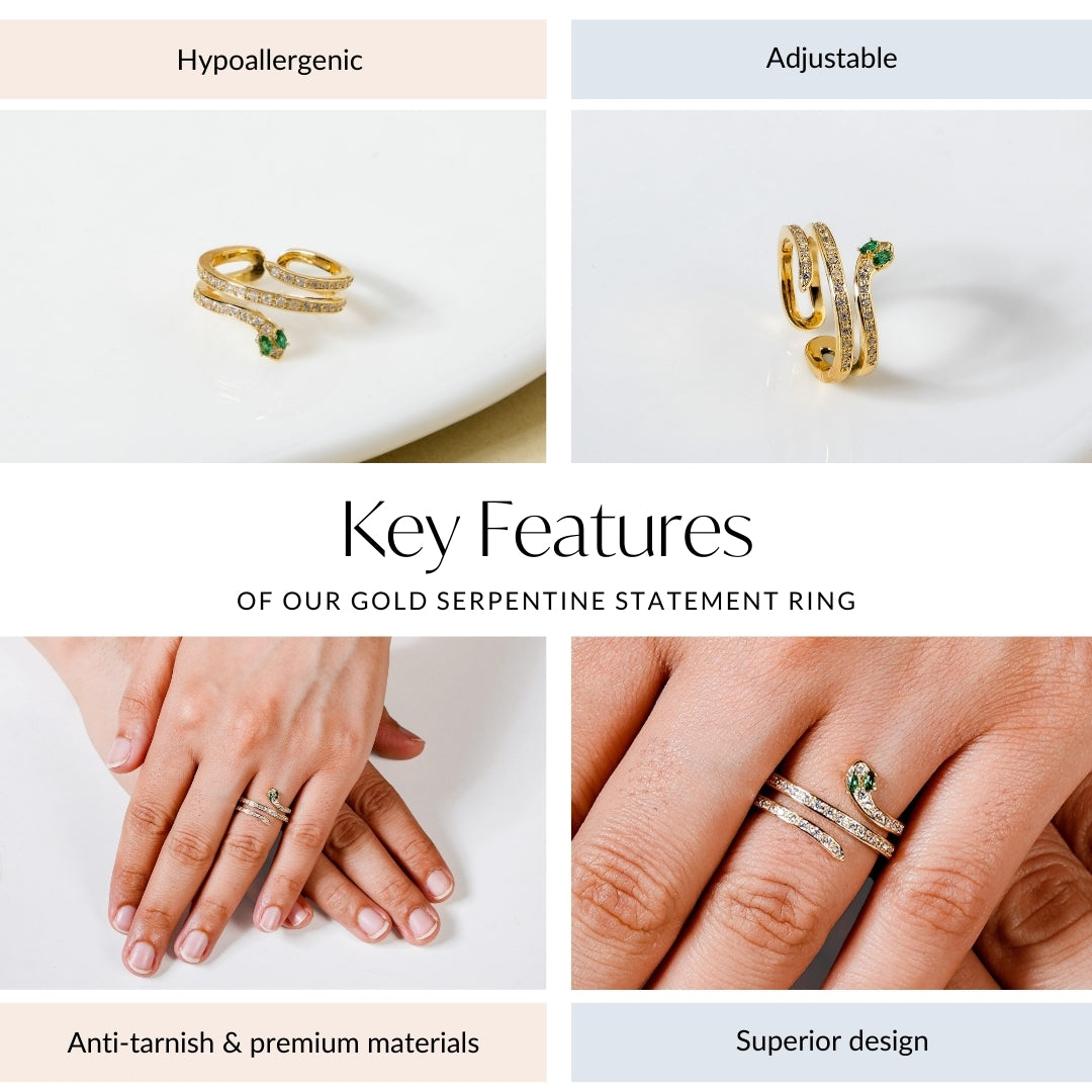 Nestyle: Let this serpent ring slither into the spotlight by pairing it with deep, moody tones - think emerald green, rich burgundy, or classic black.