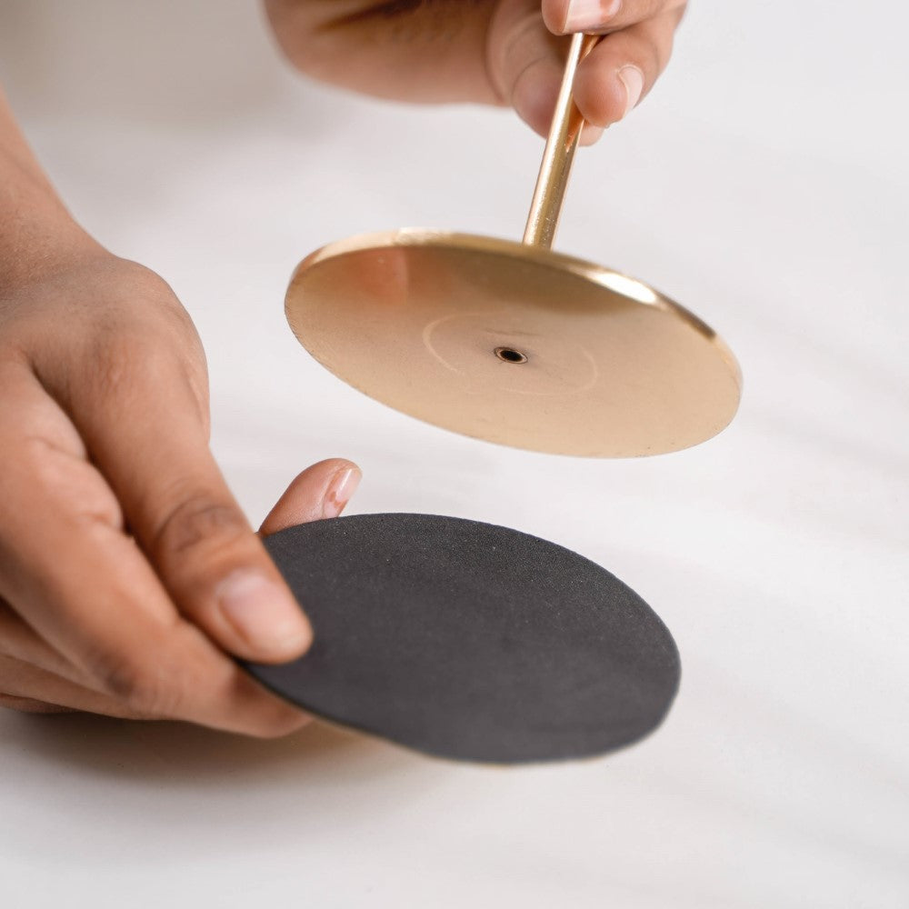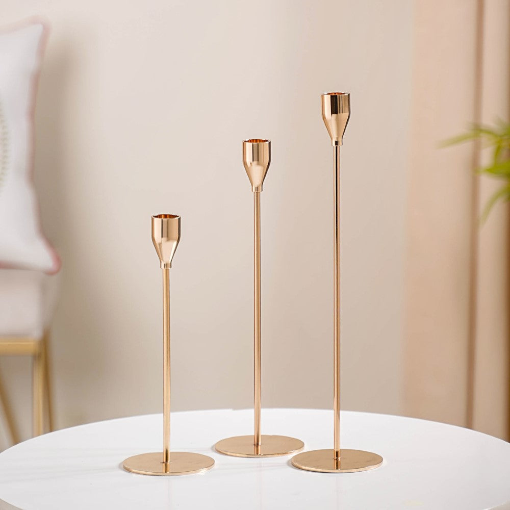 Products included: Set of 3 metal candle stands of different sizes, each with a foam base