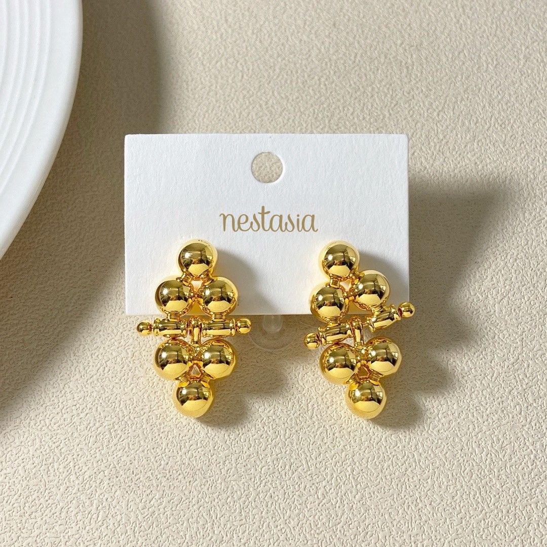 Timeless elegance is captured in these gold earrings, designed to make a lasting impression. Inspired by the beauty of balanced symmetry, the earrings feature a striking pyramid shape formed by three gold spheres, both at the top and bottom, creating a beautiful sense of balance and movement. The smooth, polished finish of the gold enhances the sleek, minimalist design, adding a sophisticated touch to any ensemble. Perfectly crafted to complement both formal and casual looks, these earrings bring an air of refined luxury.