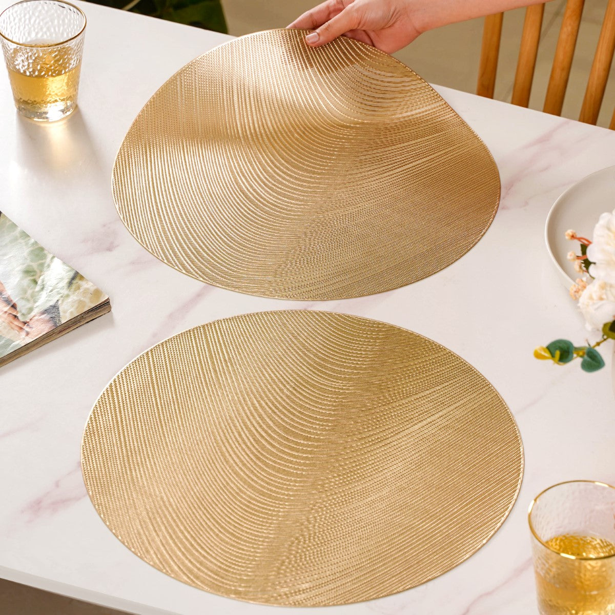 While the shimmering golden hue of the table mats is crafted to be fade-resistant, it is advisable to avoid prolonged exposure to direct sunlight. To maintain the vibrancy and aesthetic allure of the mats, it is also important to steer clear of harsh and abrasive detergents as they may cause fading and induce discolouration.