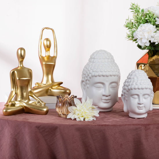 The carved yoga posture statue collectible figurines made of premium resin material with fine workmanship have a very elegant design. The abstract unique yoga posture decor showpiece attracts everyone's eyes and adds an artistic look to any space. With our yoga showpiece, add some lustrous golden splash of decor to your home and workspace.