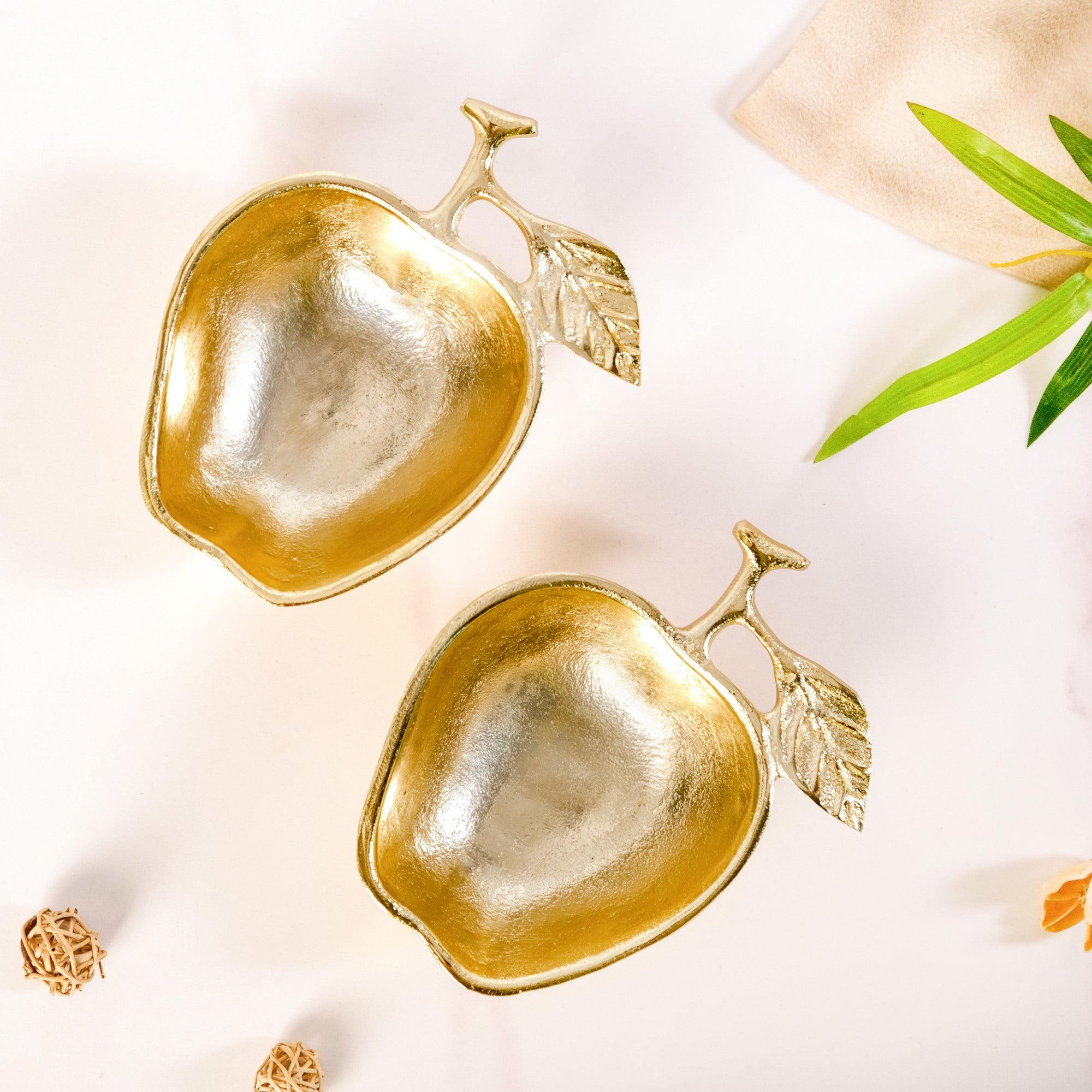 Design: Made with durable metal and designed with a gently curved form that mimics the natural contours of an apple, this trinket bowl set features a sculpted stem and a delicately detailed leaf for added visual interest. The bowl’s warm gold-toned finish and subtly textured surface give it a refined, artisanal feel, perfect for your decor. Compact yet eye-catching, it’s ideal for holding jewellery, keys, or other small essentials while adding a hint of luxury to your vanity.