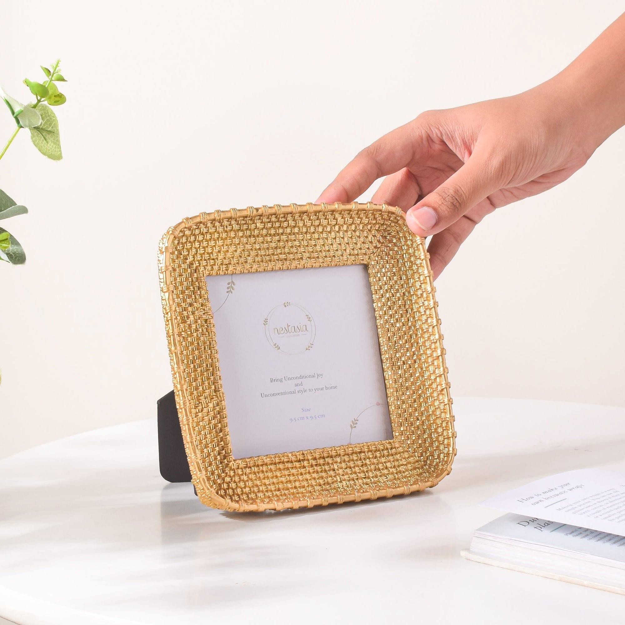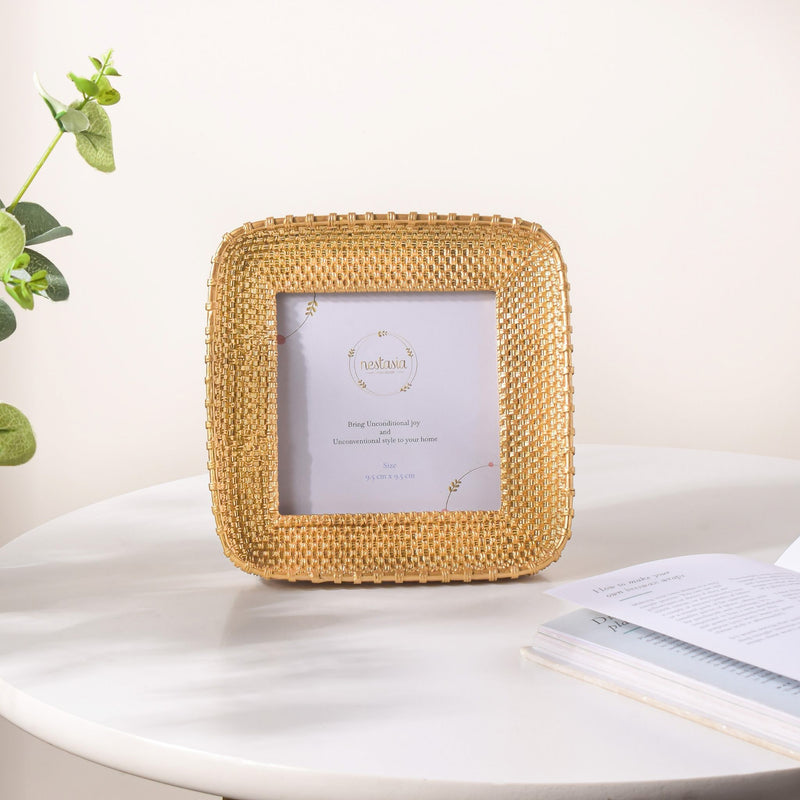 The most significant occasions in life, elicit an intuitive wish to cherish them and capture them all in photographs. The binding-themed golden photo frame is the ideal method to preserve all of the old photographs. Let all the memorable pictures shine as bright as gold, and the photo frame makes sure that the photograph never loses its spark. The picture frame's aesthetic appeal is enhanced with small binding patterns in scintillating gold on either side.