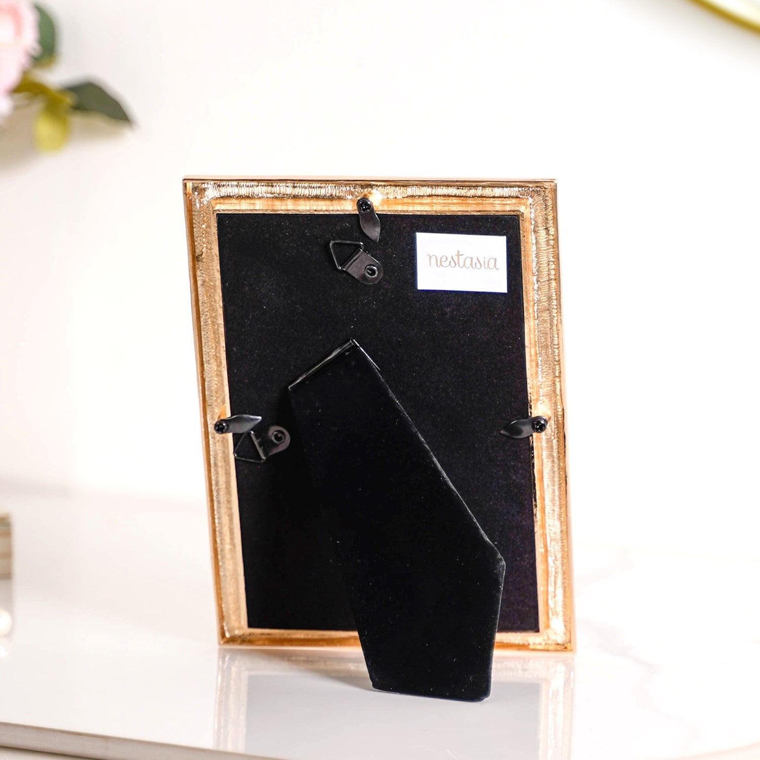 Nestip: Pair it with a contrasting silver or rose gold frame for a chic, layered tabletop display.