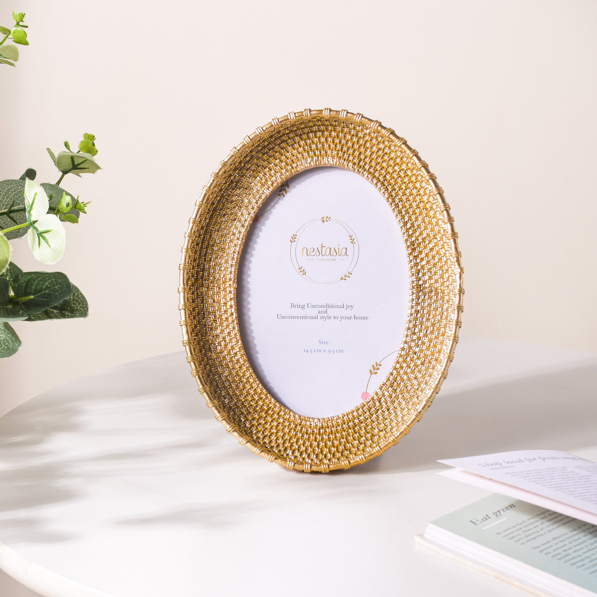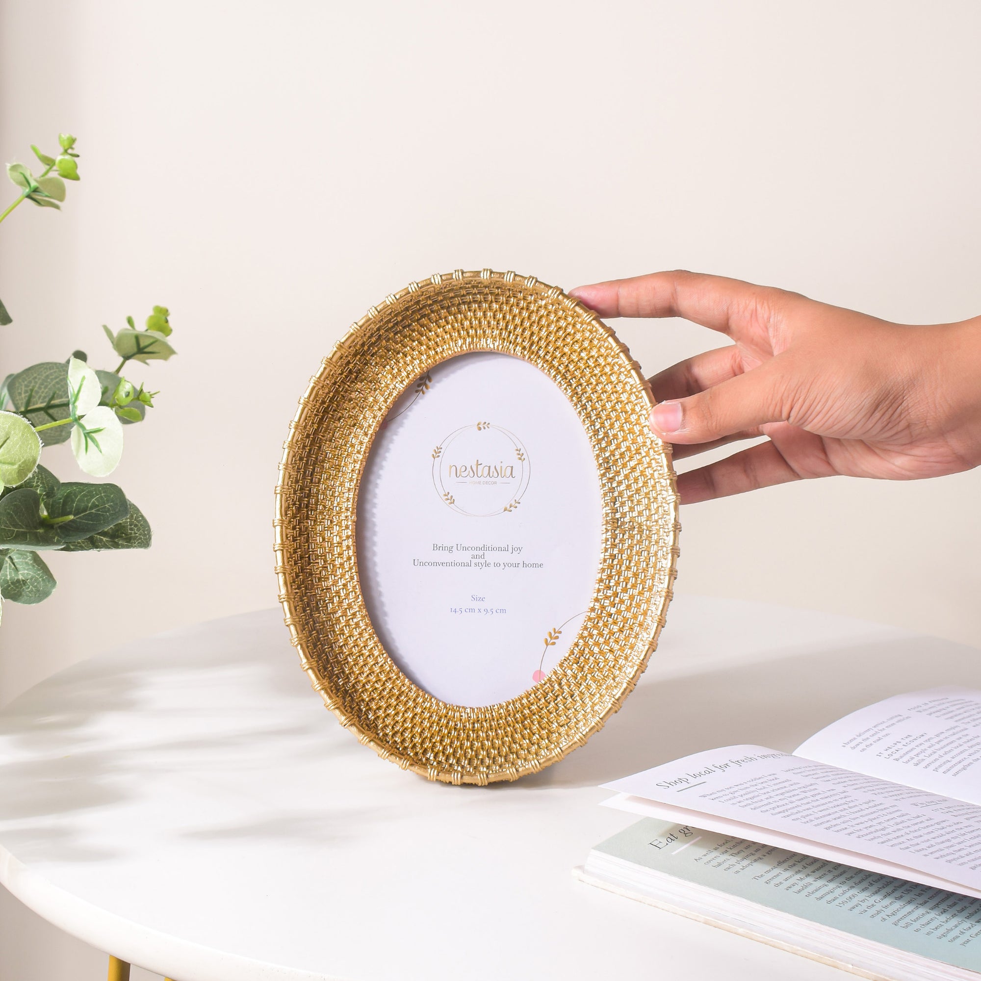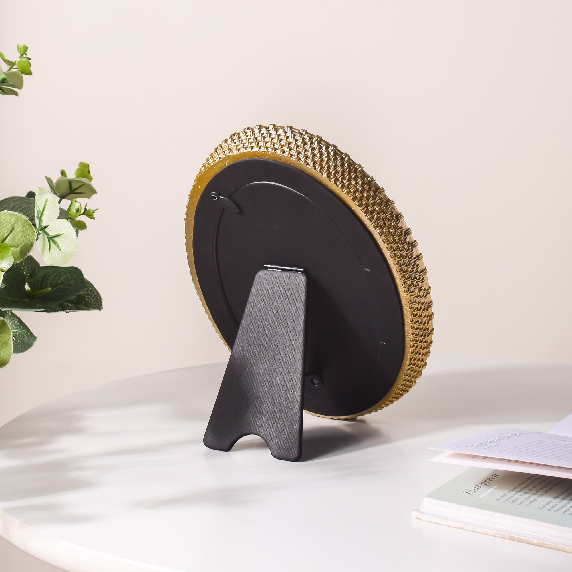 A jute-like pattern creating a little knot at every nook and corner of the spherical photo frame creates a beautiful, vintage look. Make the memories last a lifetime by anchoring the photographs to the photo frame. Place the photo frame on the table, along with an arrangement of orchid pots or a vase with faux flowers, to make a creative table décor arrangement.