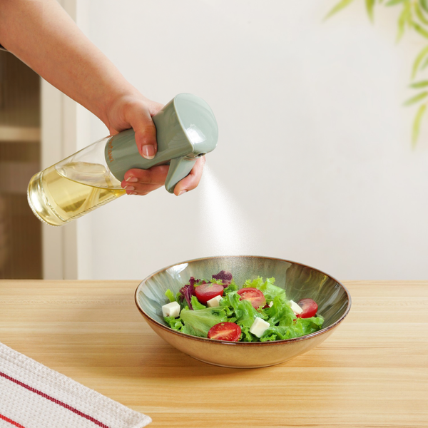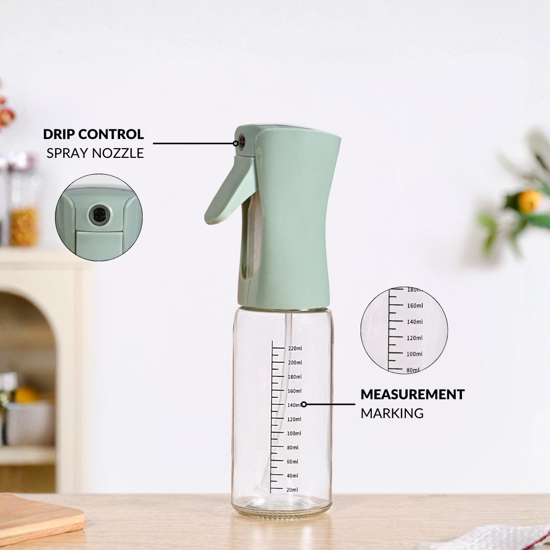 Design: Crafted with a transparent glass bottle body, this dispenser features a clear measurement markings for everyday visibility. The sage green PVC spray lid releases a fine fan shaped mist for even application while helping keep dispensing neat and controlled. An integrated bottom reaching straw ensures efficient use, while the ergonomic handle and leak resistant sealing lid support mess free handling.