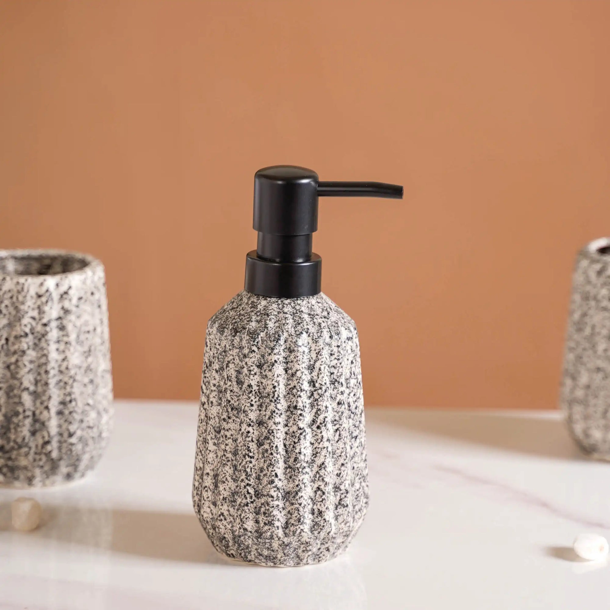 The refillable dispenser is designed for convenience. It features an effortless-to-use pump that allows for easy refilling. The dispenser has a generous capacity, reducing the frequency of refills and ensuring you always have your favorite soap or lotion readily available.