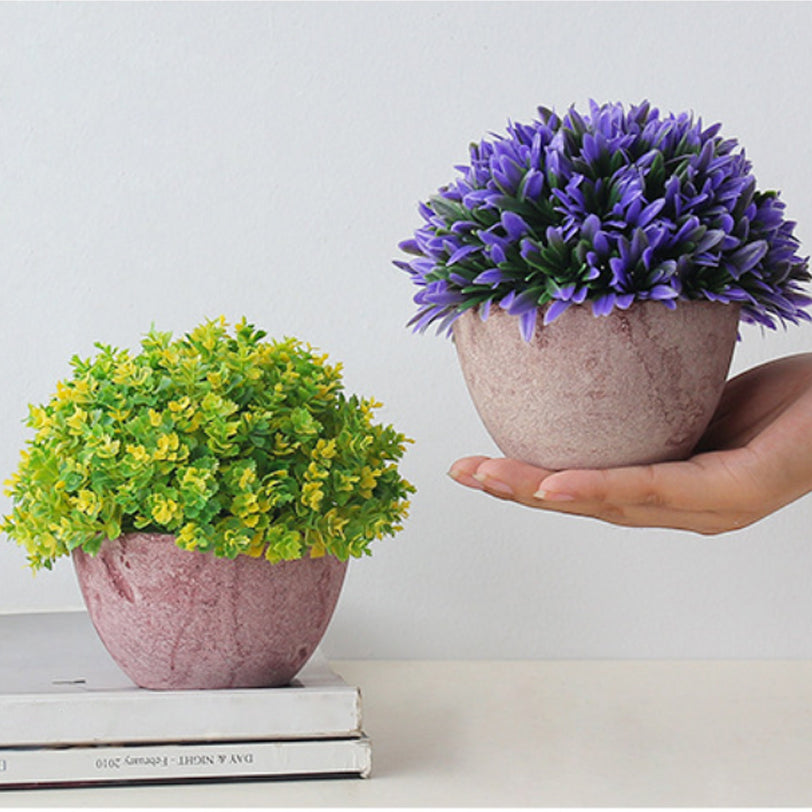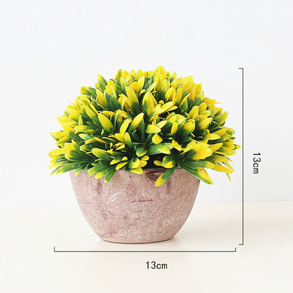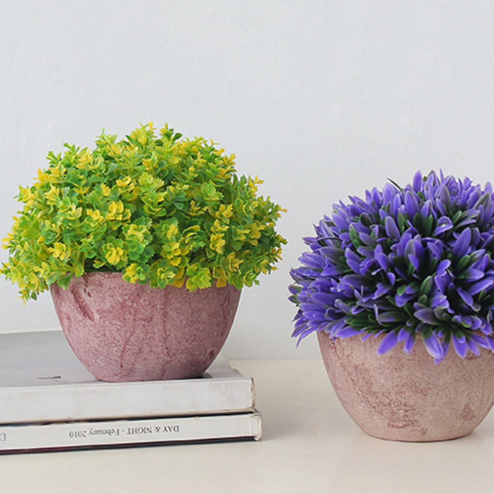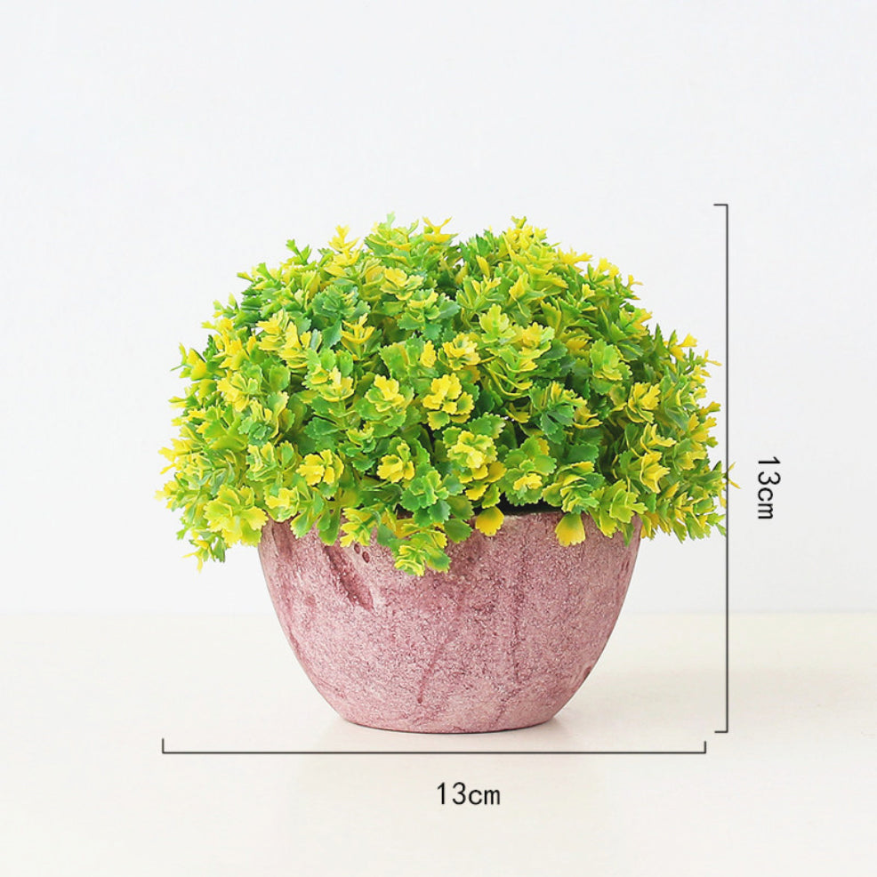 Luscious artificial plants that are potted in a planter and give a reviving or refreshing feel to any space. The faux plants look natural and can be used as a garden decoration or desk decoration. The artificial plants are available in shades of green, yellow and pink to match all deco settings. The table plants can also be placed on wall shelves to add brightness.
