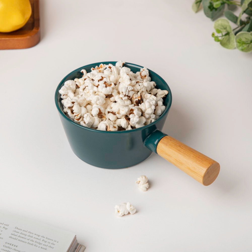 Mrs M Dalal The earth-coloured bowls with convenient yet smart wooden handles make for an attractive eating experience. They are also versatile, being useful as individual dishes for soup, pasta dishes, or even as serving dishes for a 2 or 3-person meal.