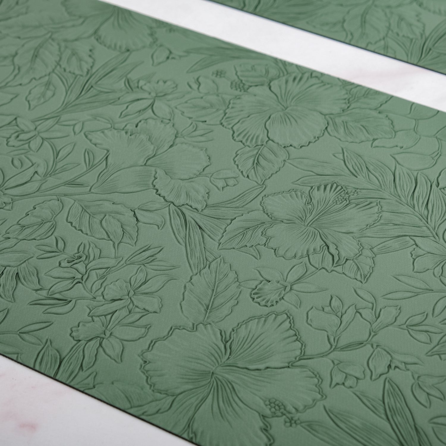 Green Embossed Hibiscus Rectangular Placemats Set Of 6