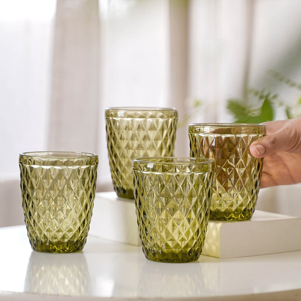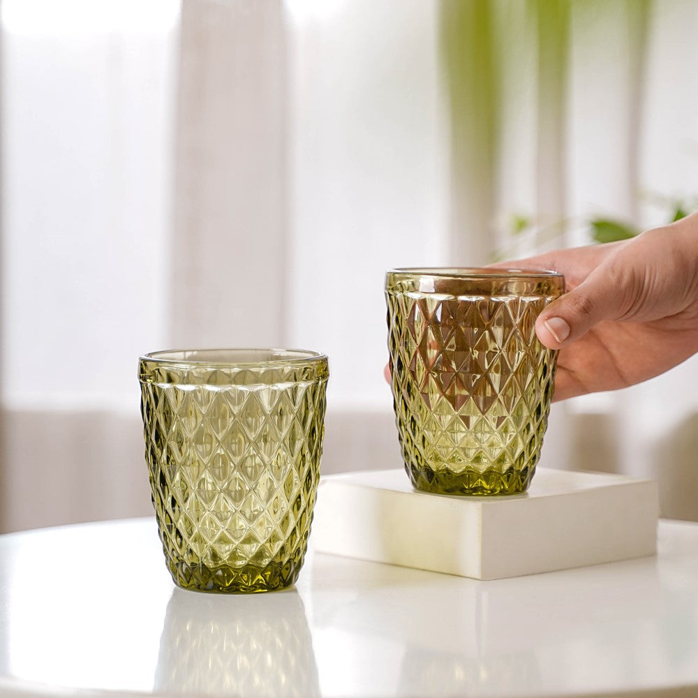 The glass water cup set is available in three more colour options other than green, including grey, blue, and purple. All the variants have the same design and material. So you can pick any colour that matches your personal sense of style and decor.