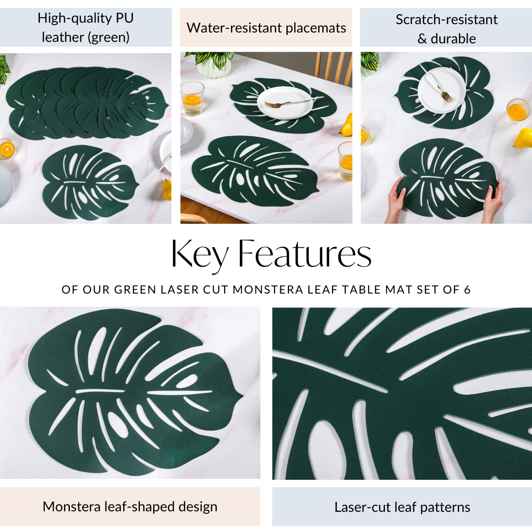 Green Laser Cut Monstera Leaf Table Mat Set Of 6