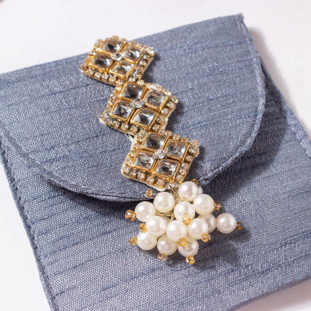 We are always followed by shadows, but not all shadows are good. The color of the envelope is grey because it will soak in all the negative forces and their shadows, lurking around the pious thread of rakhi, and protect your bond with care and affection. So this Raksha Bandhan, let your siblinghood live a thousand years or eternity with our embellished grey rakhi envelope.