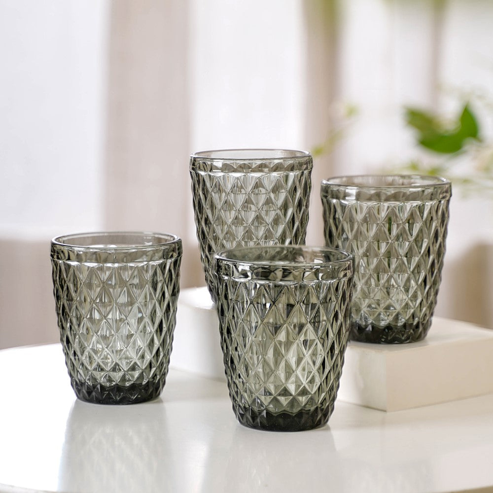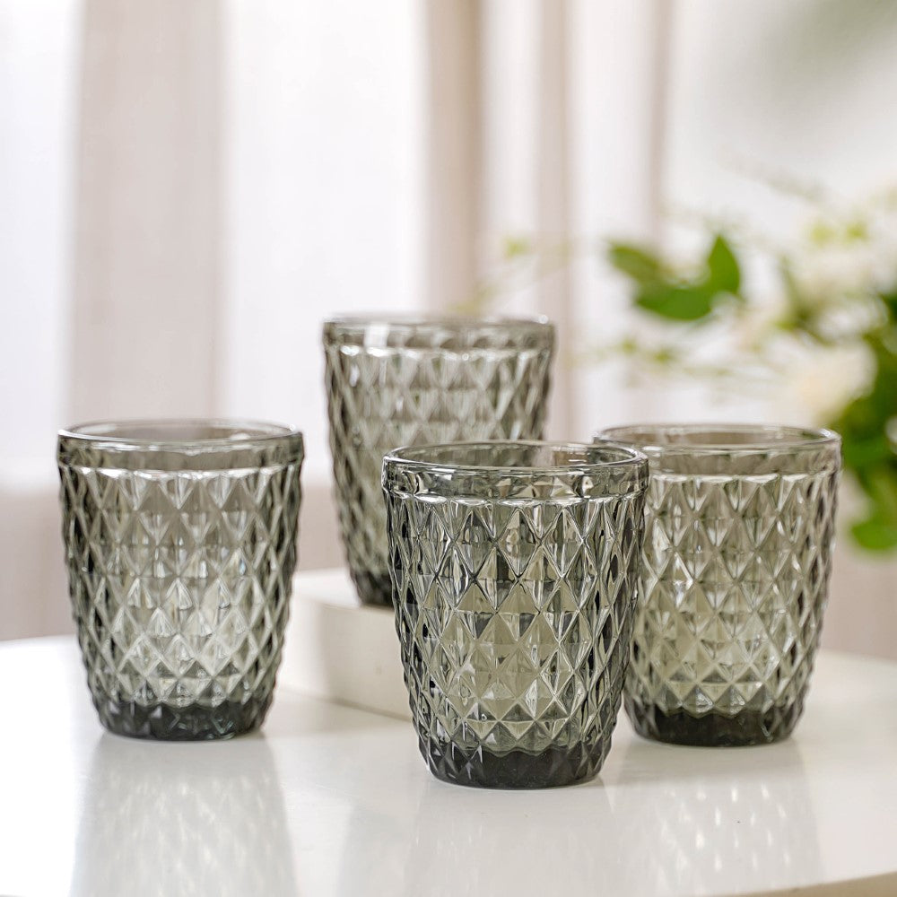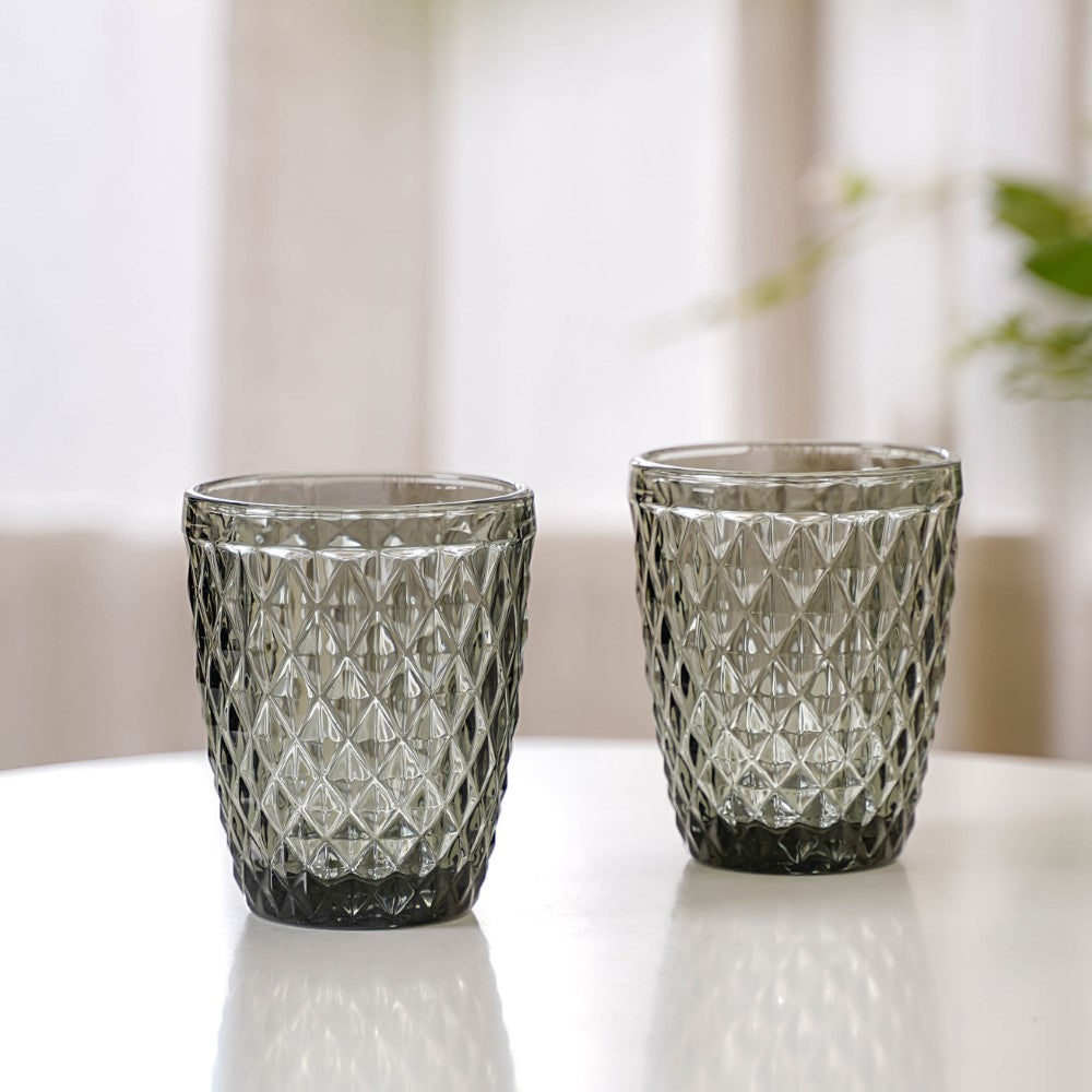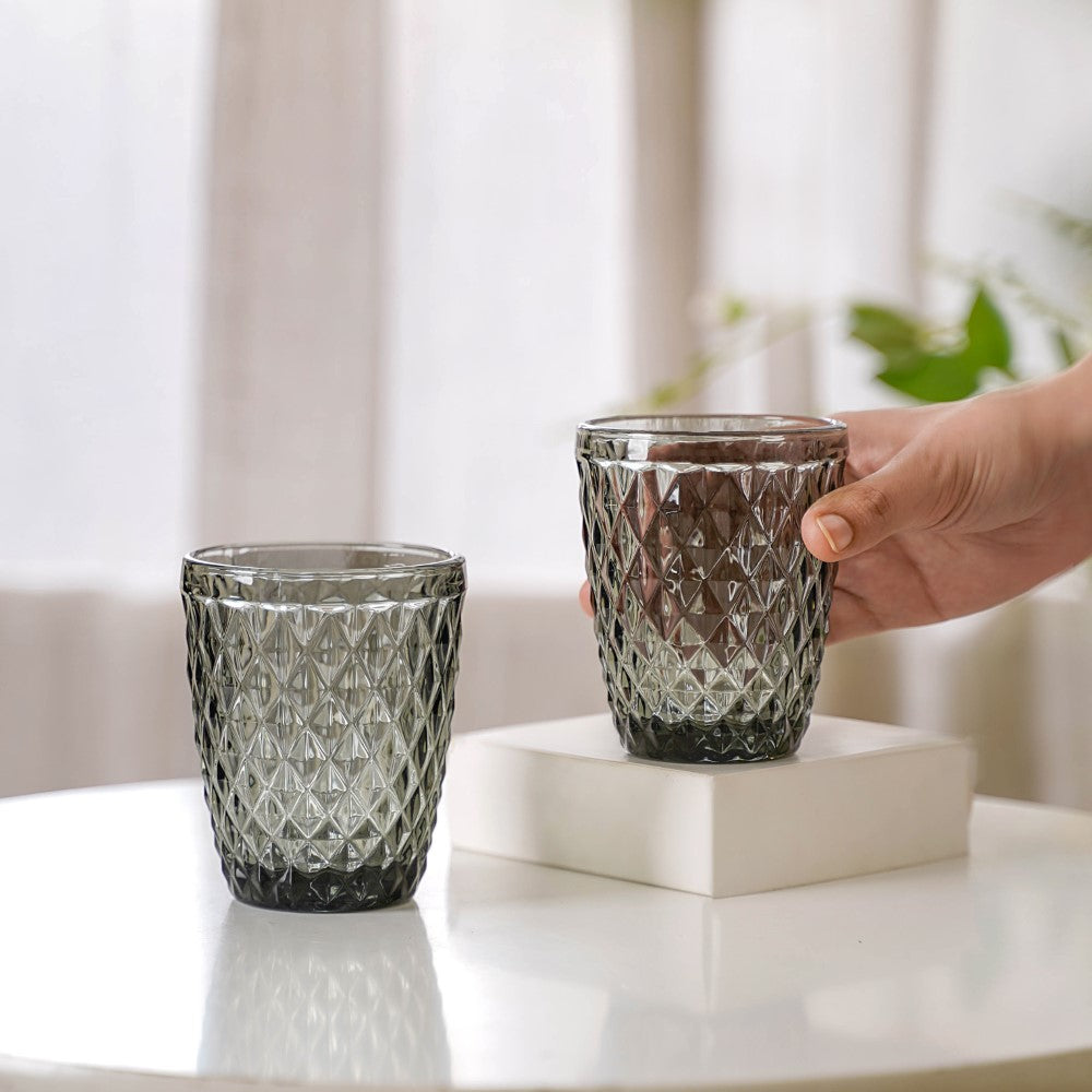 The crystal glass water tumbler set is available in three more colour options other than grey, including green, blue, and purple. All the variants have the same design and material. So you can pick any colour that matches your personal sense of style and decor.